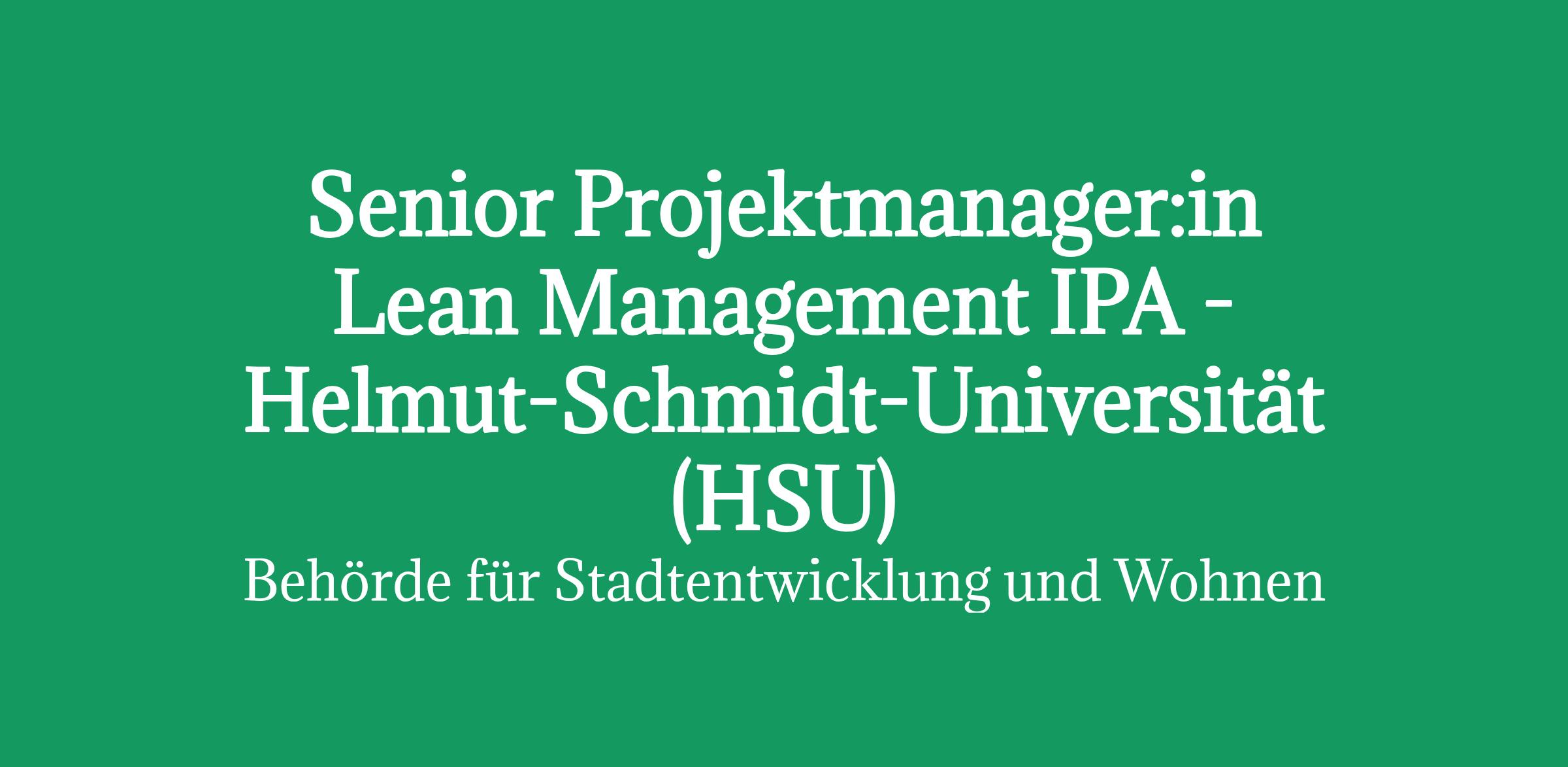 Senior Projektmanager:in Lean Management IPA - Helmut-Schmidt-Universität (HSU) Behörde für Stadtentwicklung und Wohnen, Amt für Bauordnung und Hochbau, Bundesbauabteilung