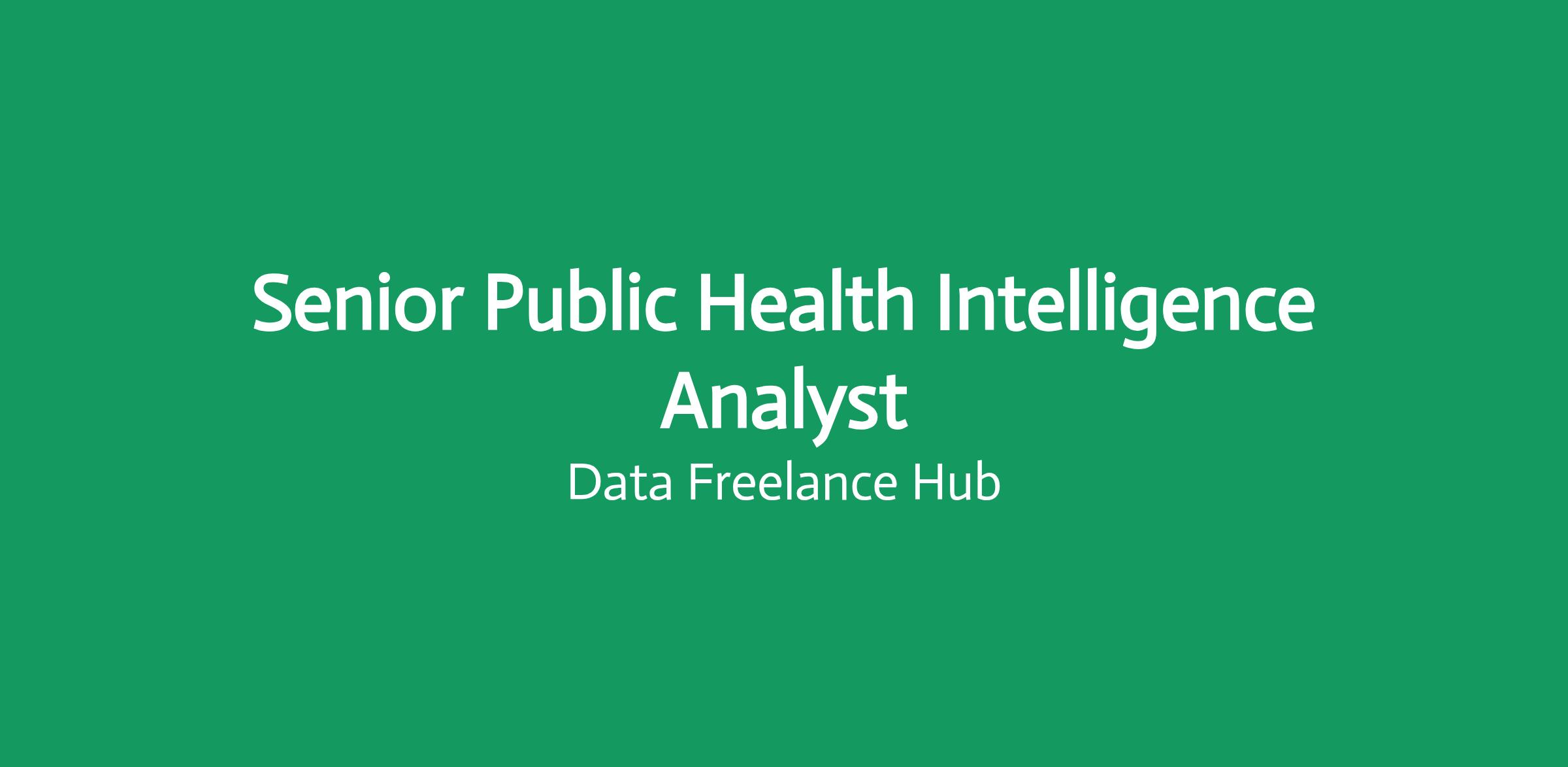 Job Description: Senior Public Health Intelligence Analyst - 1 year Fixed Term. Grade - Grade 14. Salary range: £53,172 - £55,323. Contract: Fixed Term (1 Year). Hours of work: 36 per week. Location: BWH, Croydon.