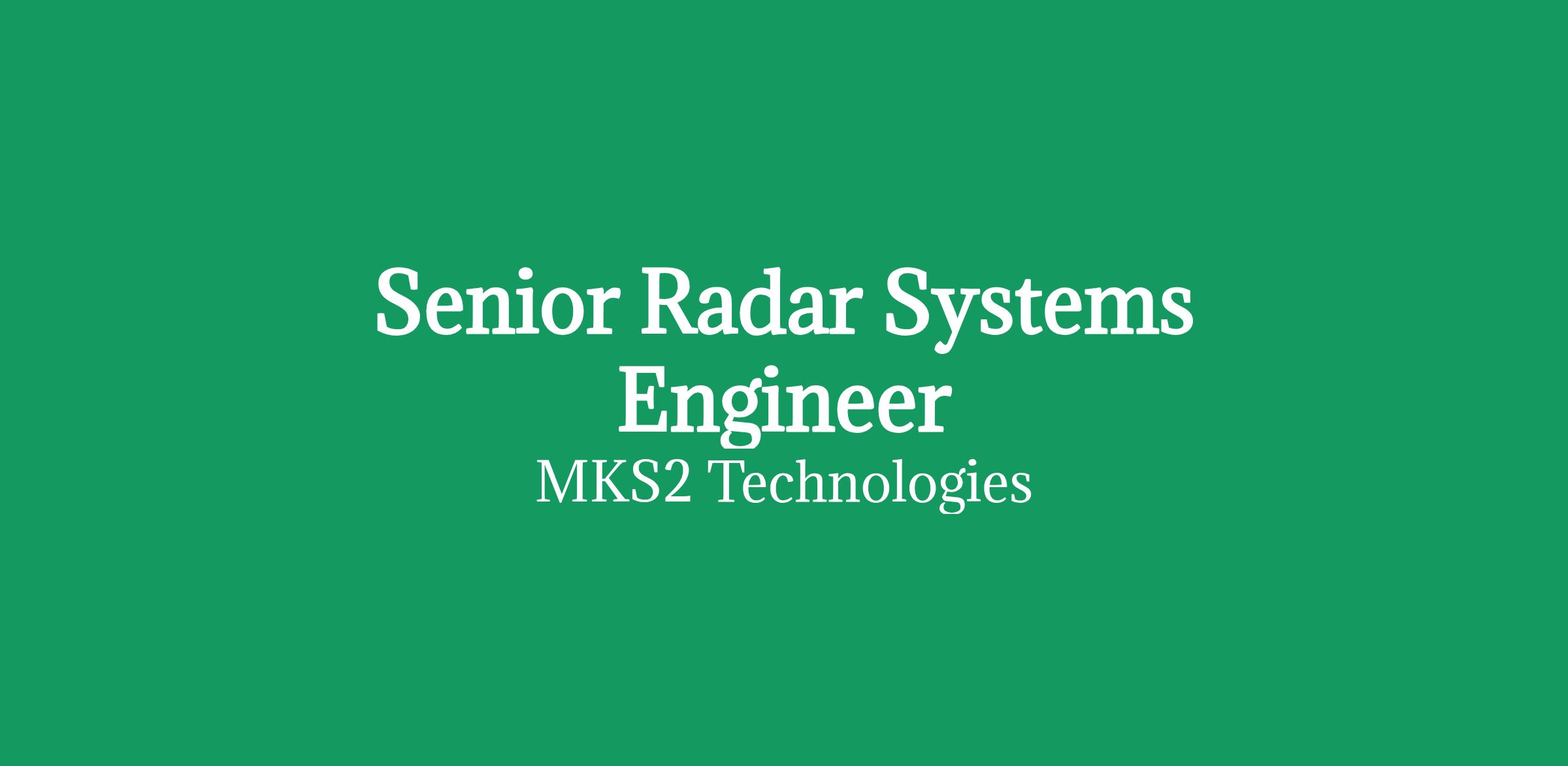 Senior Systems Engineer - LTAMDS RadarLocation: Tewksbury, MA (50 Apple Hill Drive, Assabet - Building 1)