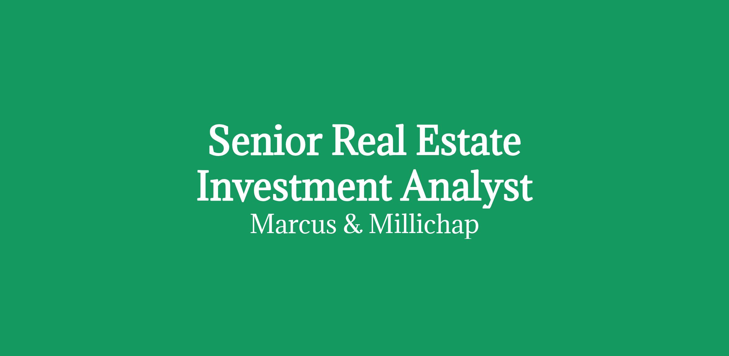 Job DescriptionJob DescriptionMarcus & Millichap is the nation's leading brokerage firm specializing in real estate investments with offices nationwide. Marcus & Millichap offers owners and investors the nation's most comprehensive real estate research and analysis for all types of income-producing property.