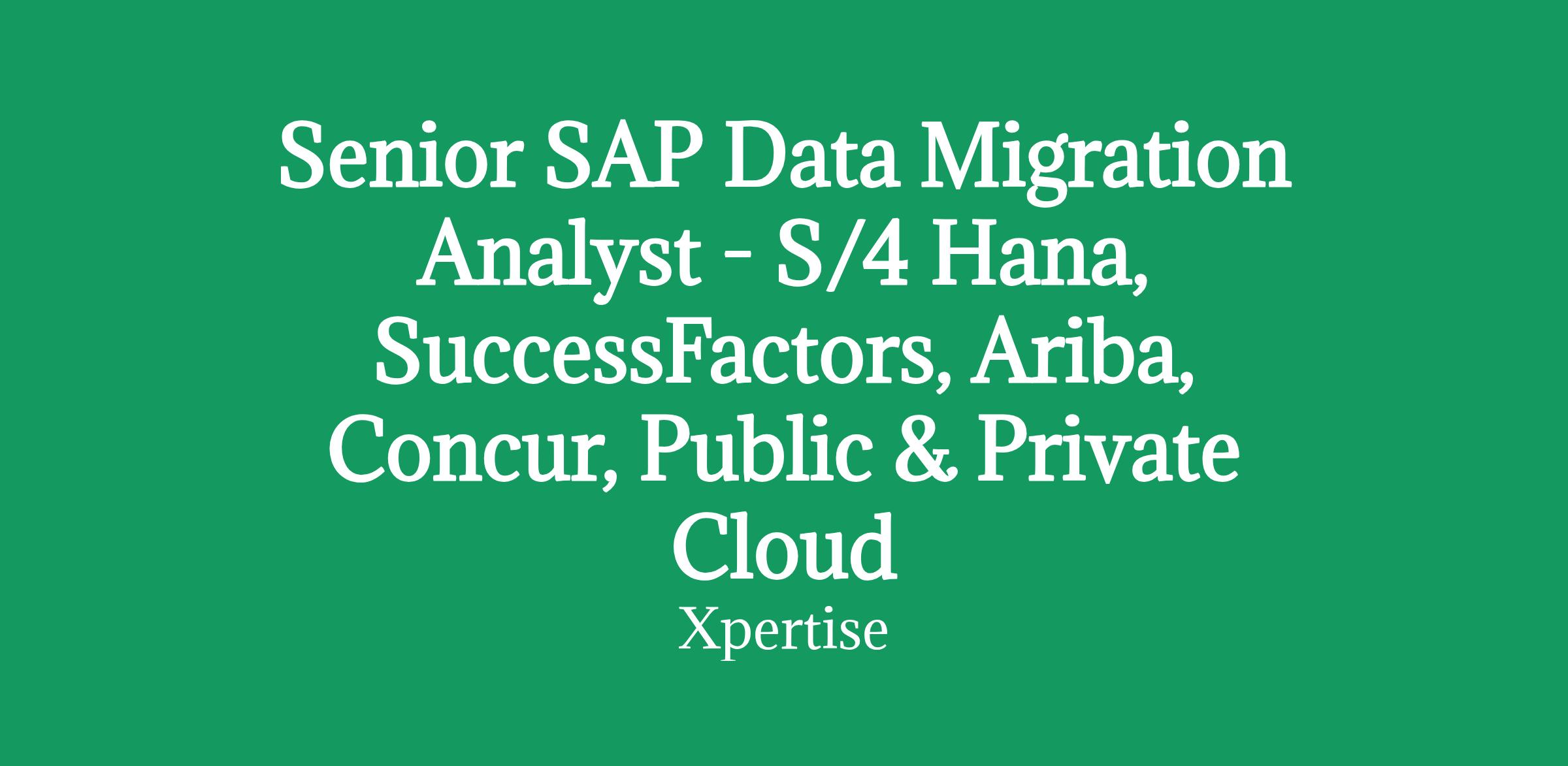 Senior SAP Data Migration Analyst - S/4 Hana, SuccessFactors, Ariba, Concur, Public & Private Cloud