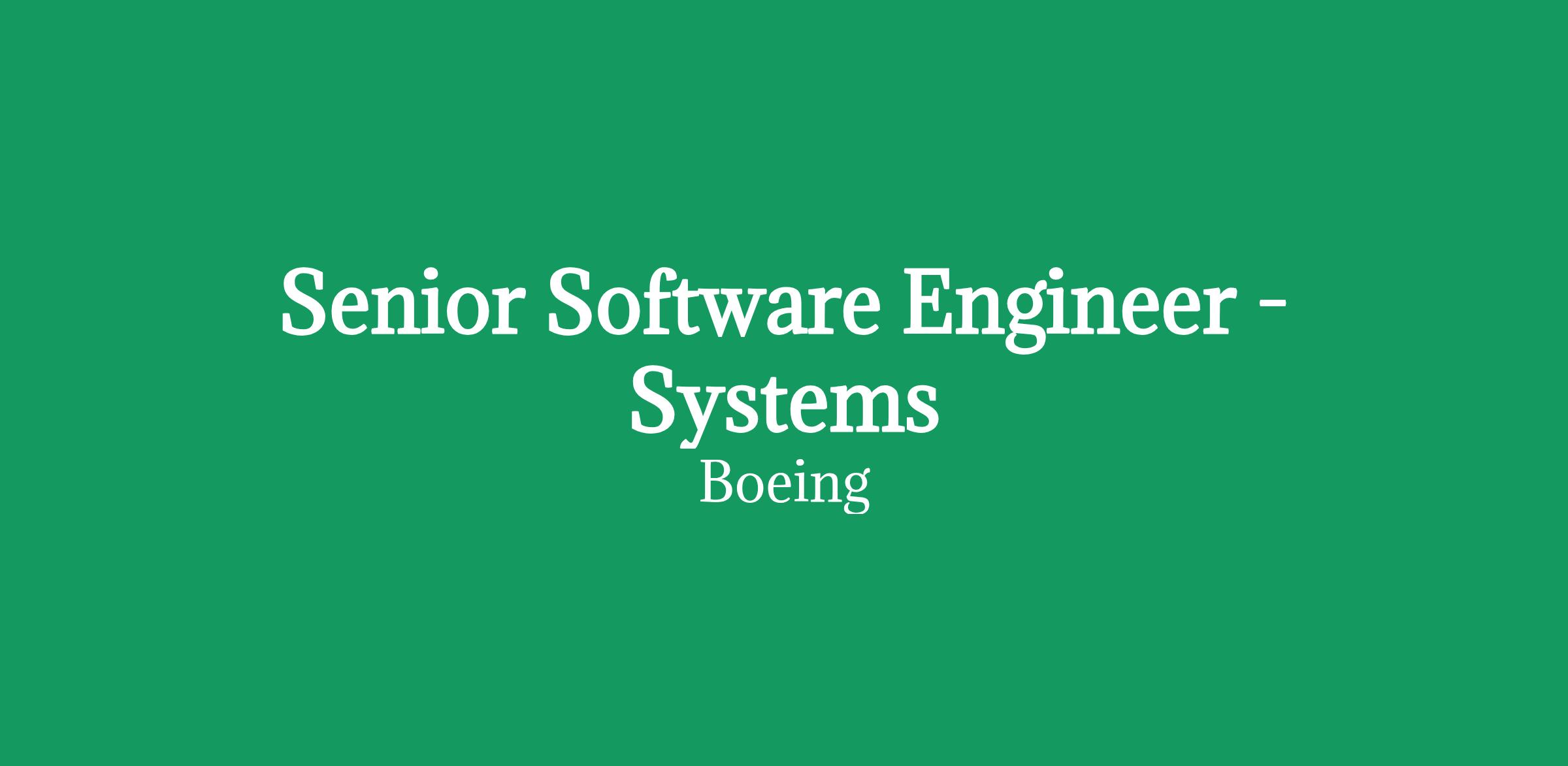 The Boeing Company is looking for a Senior Software Engineer - Systems to join the KC-46 Software Team located in Tukwila, Washington.