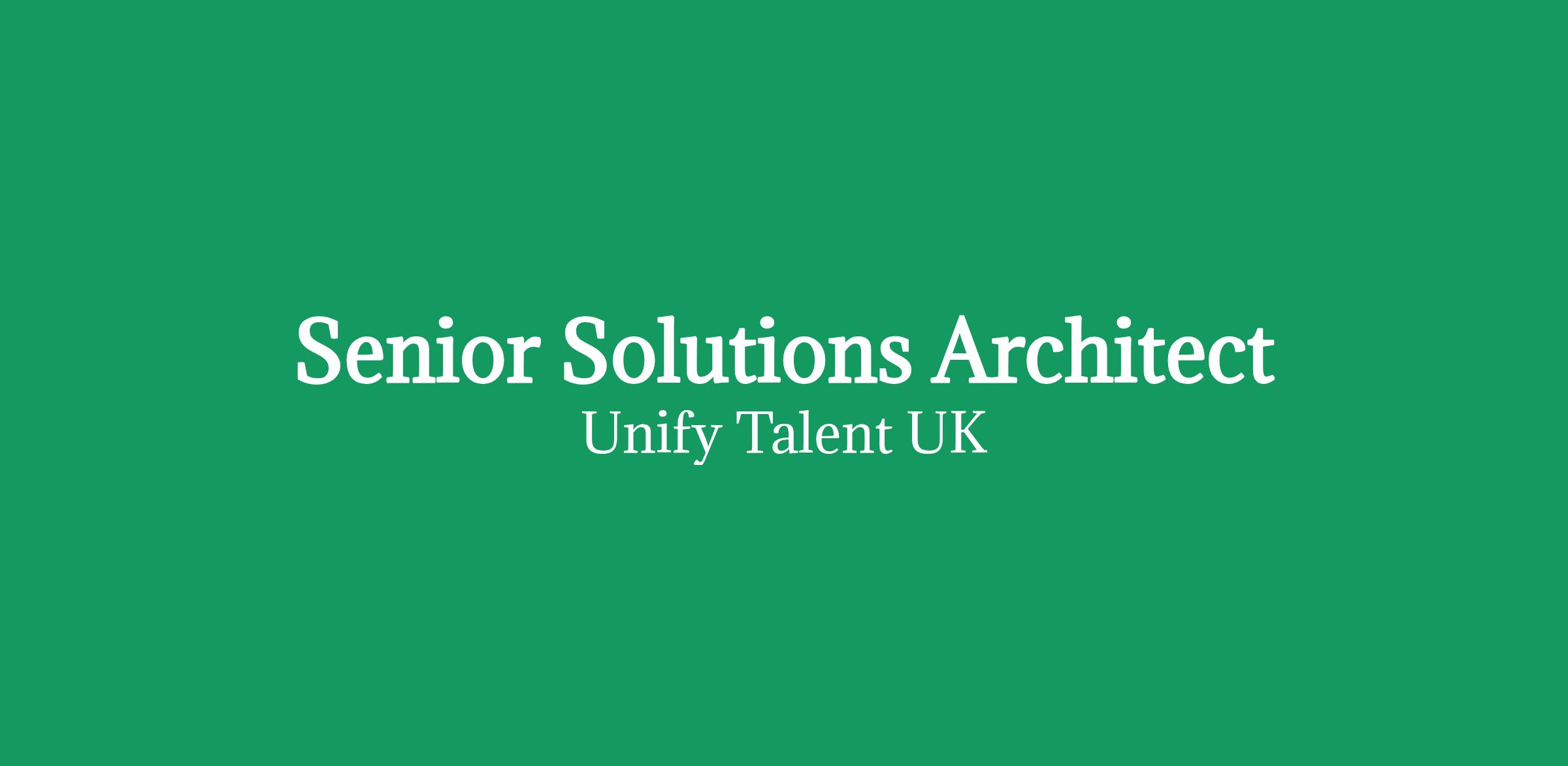 Unify are proud to exclusively represent a respected UK Consultancy, who are looking to secure the services of an experienced Senior Solutions Architect / Technical Architect, on an Outside IR35 basis, to support a high-profile program in the Government sector.