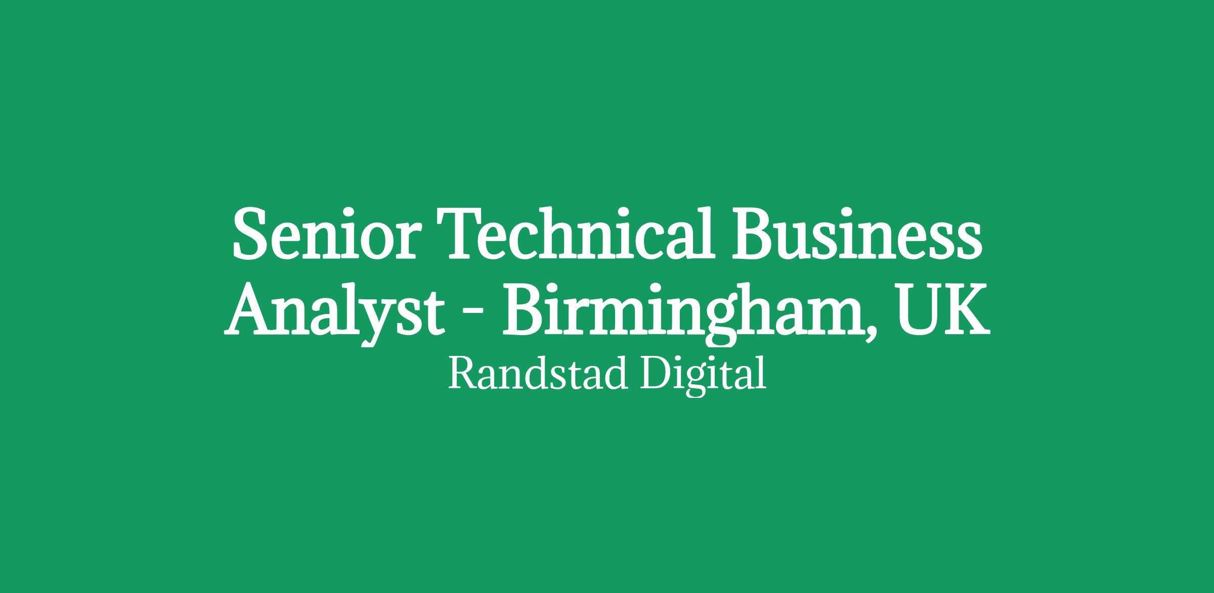 Senior Technical Business Analyst - Birmingham, UK
