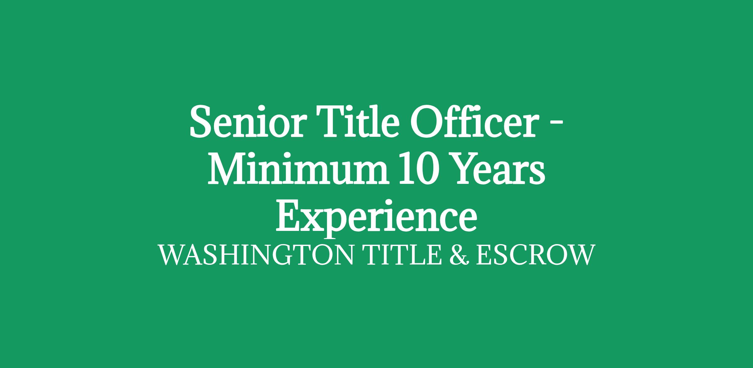 Minimum of 10 years experience as a Title Officer or in a similar role within the mortgage or financial services industry.