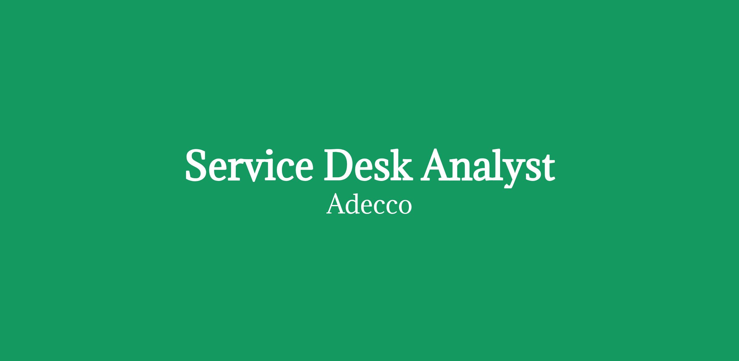 Adecco are please to be recruiting for a Service Desk Analyst for our client Southern Water in the Sussex area.