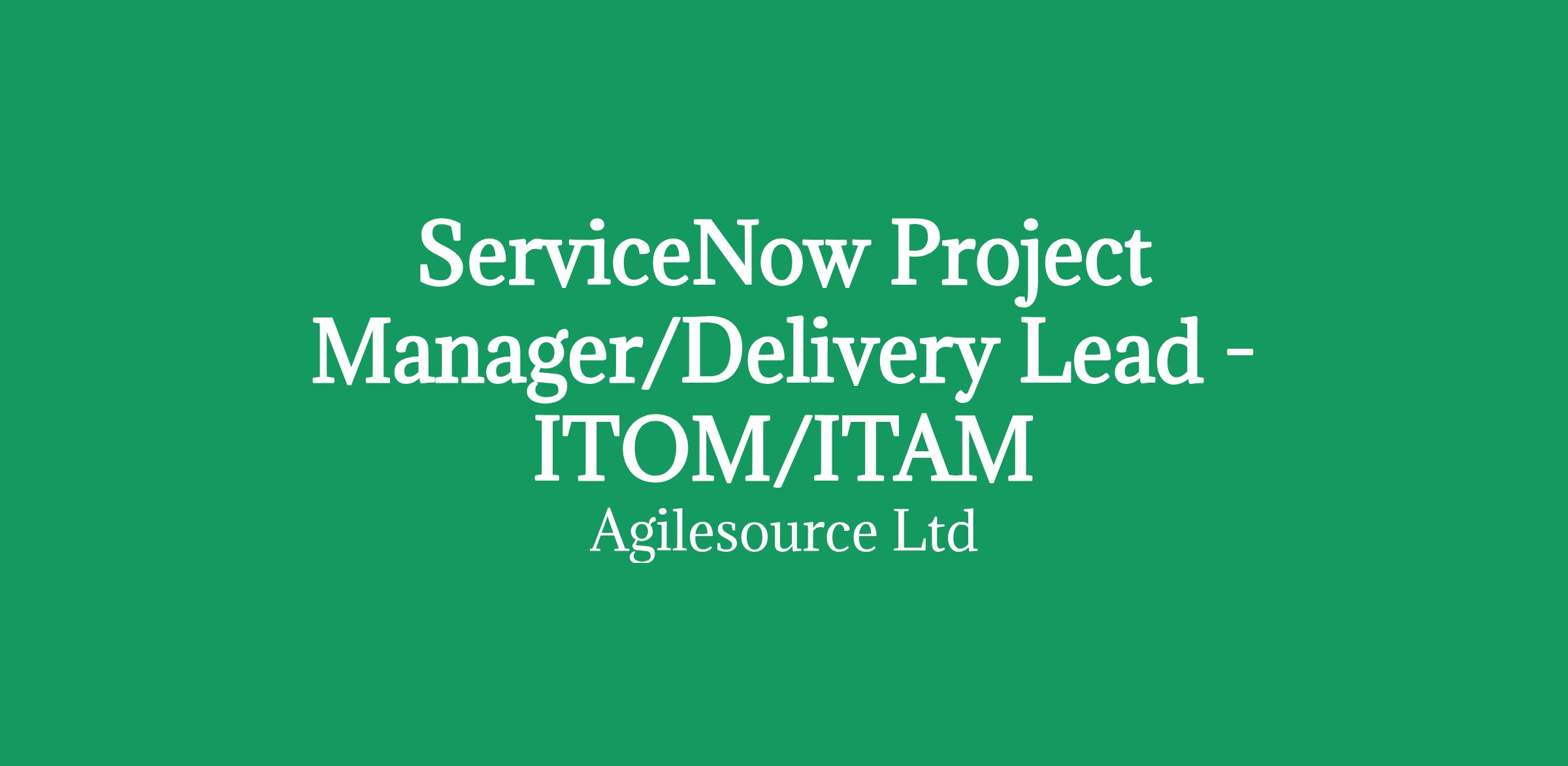 AgileSource are looking for a ServiceNow Project Manager/Delivery Lead for a Contract or Permanent role.