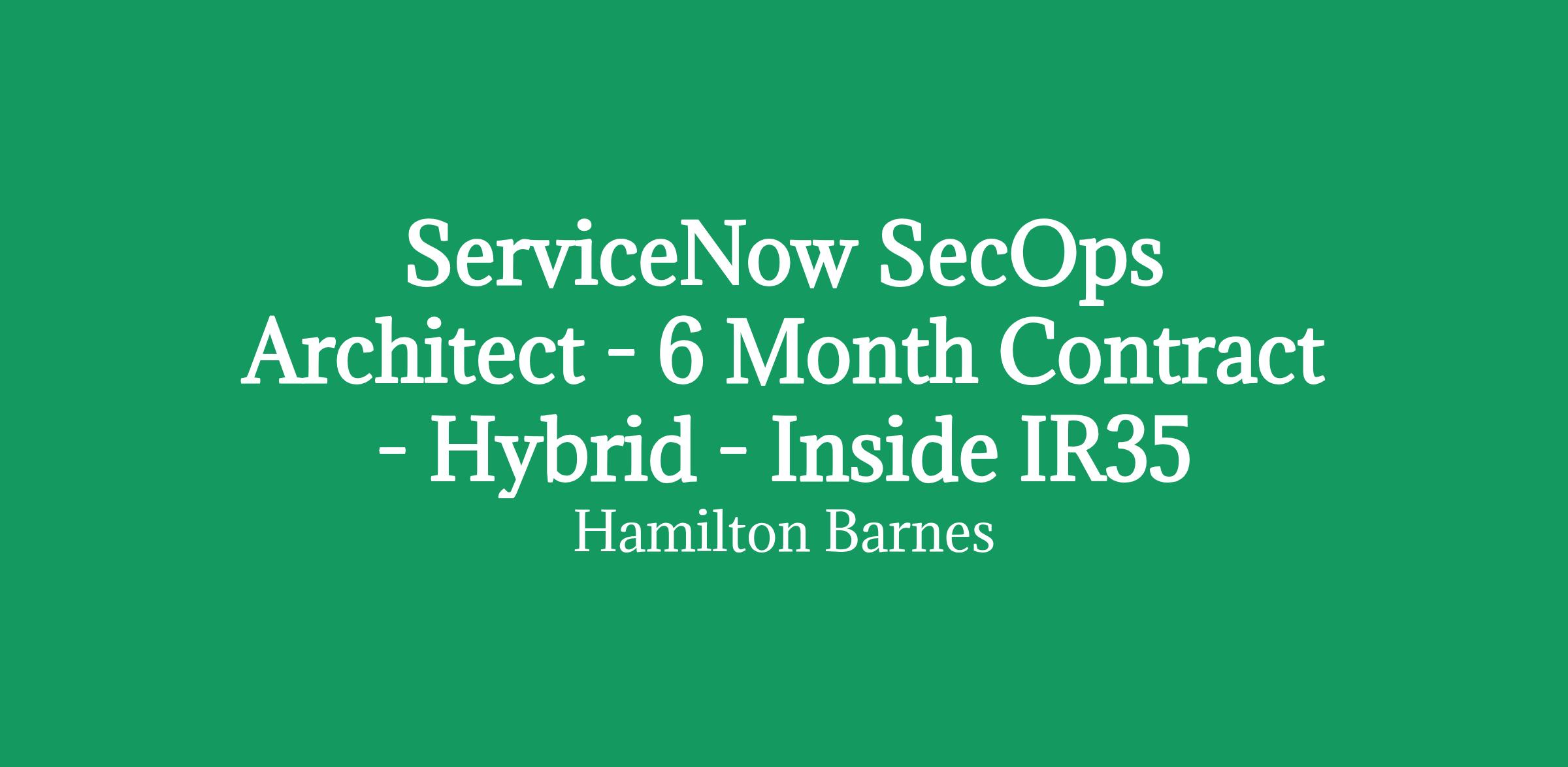 ServiceNow SecOps Architect - 6 Month Contract - Hybrid - Inside IR35
