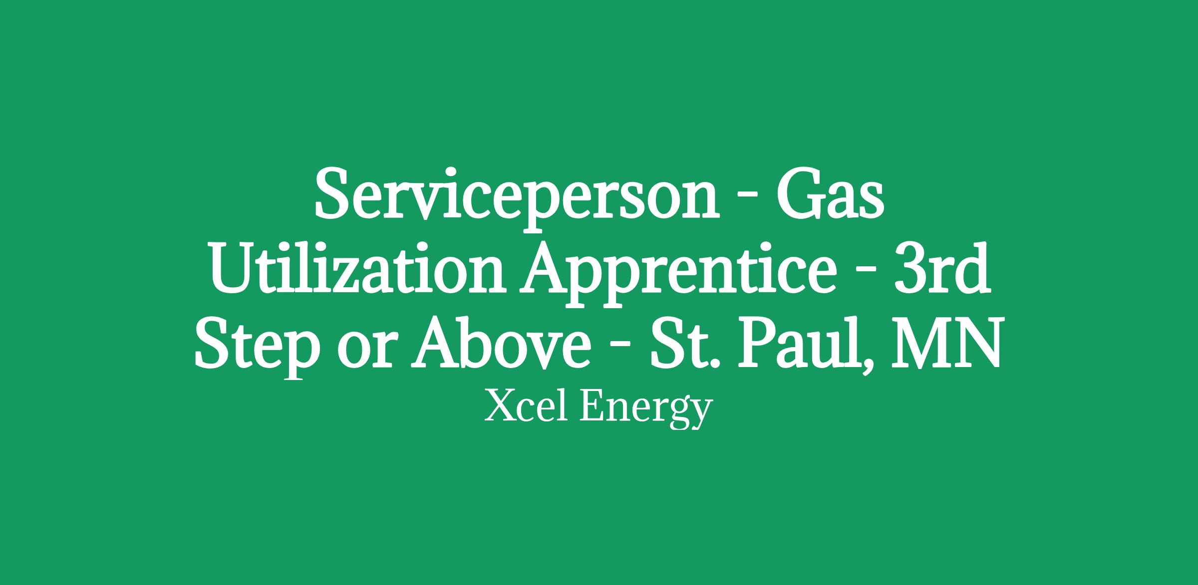 Job Summary:There is an anticipated need for an Apprenticeship Program in the Gas Utilization Section for one or more 3rd step or above apprentice(s) at the Rice Street Service Center in St. Paul, MN. The starting rate of pay for Gas Utilization Apprentice - 3rd step position is $42.09 (2025 rate).