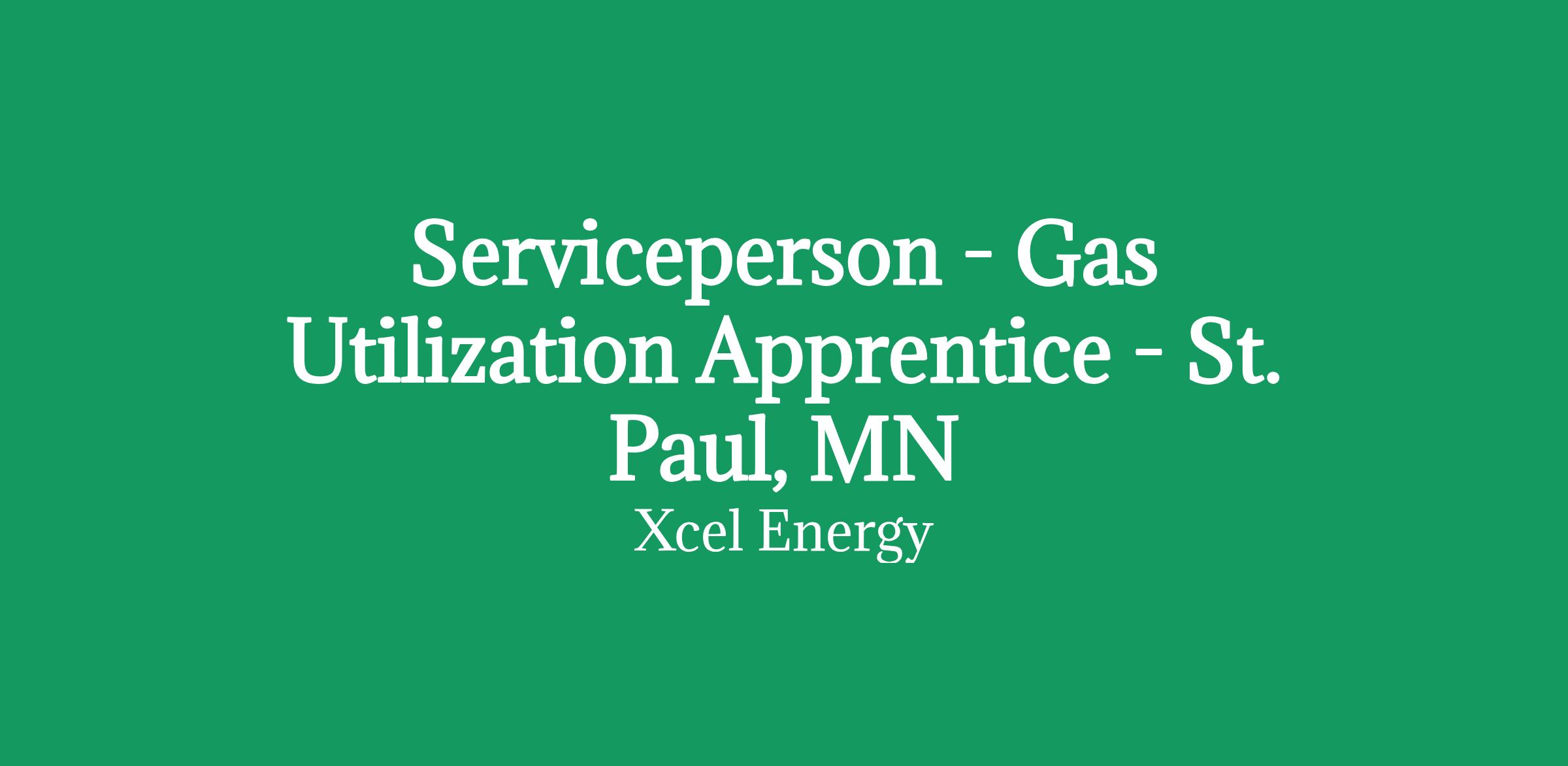 Job Summary:There is an anticipated need for an Apprenticeship Program in the Gas Utilization Section for one or more Apprentice(s) at the Rice Street Service Center in St. Paul, MN. The starting rate of pay for Gas Utilization Apprentice position is $34.20 (2025 rate).