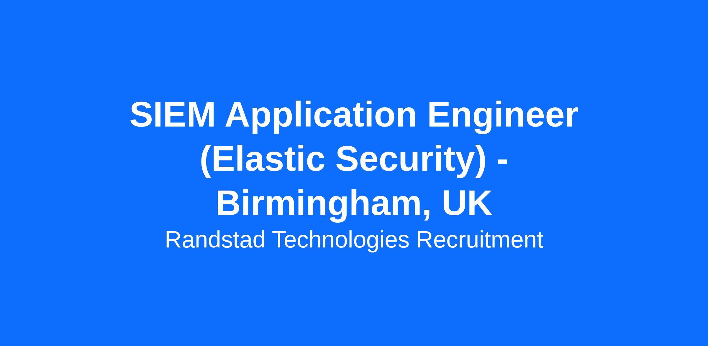 SIEM Application Engineer (Elastic Security) - Birmingham, UK