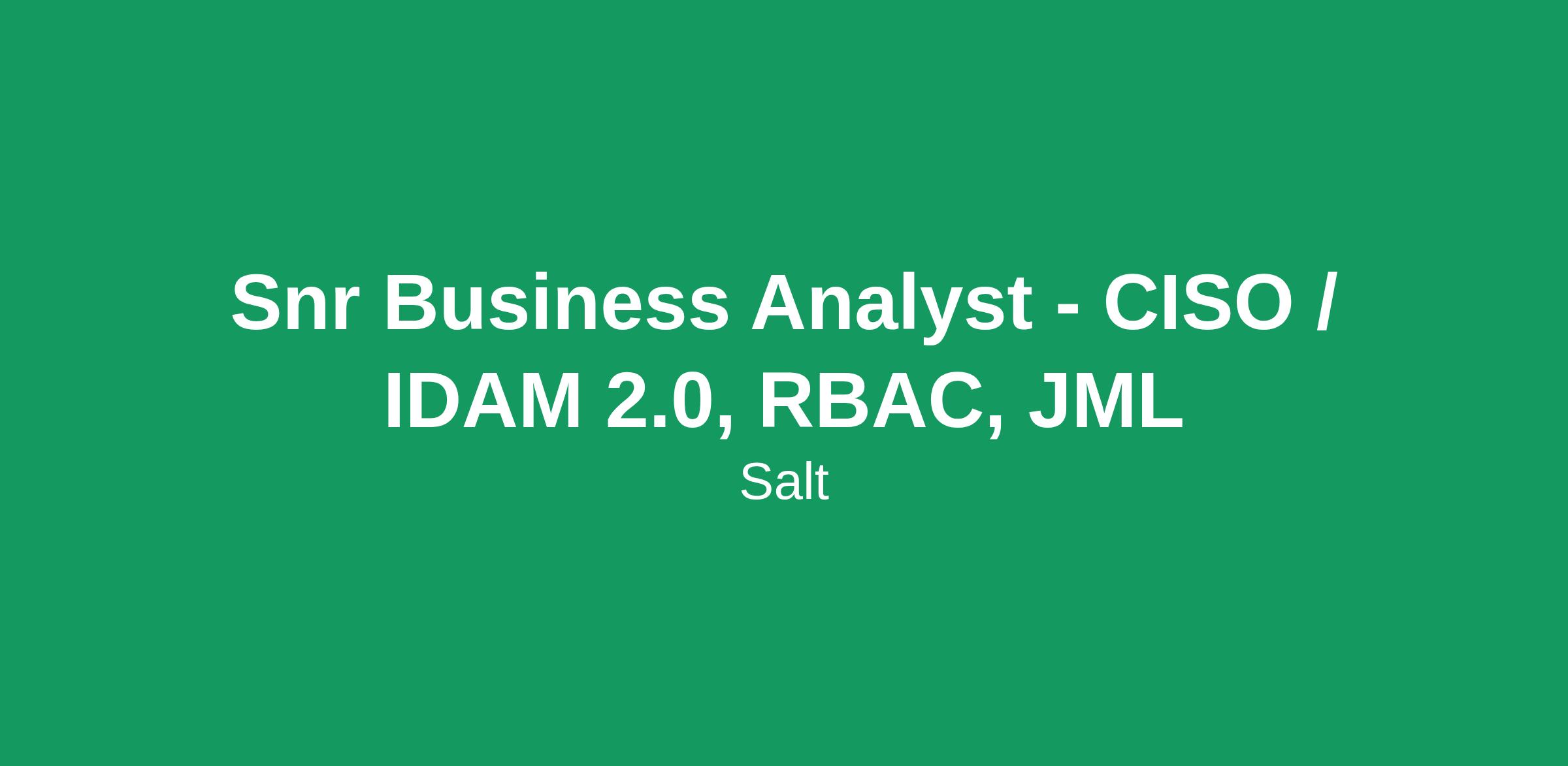 Snr Business Analyst - CISO / IDAM 2.0, RBAC, JML
