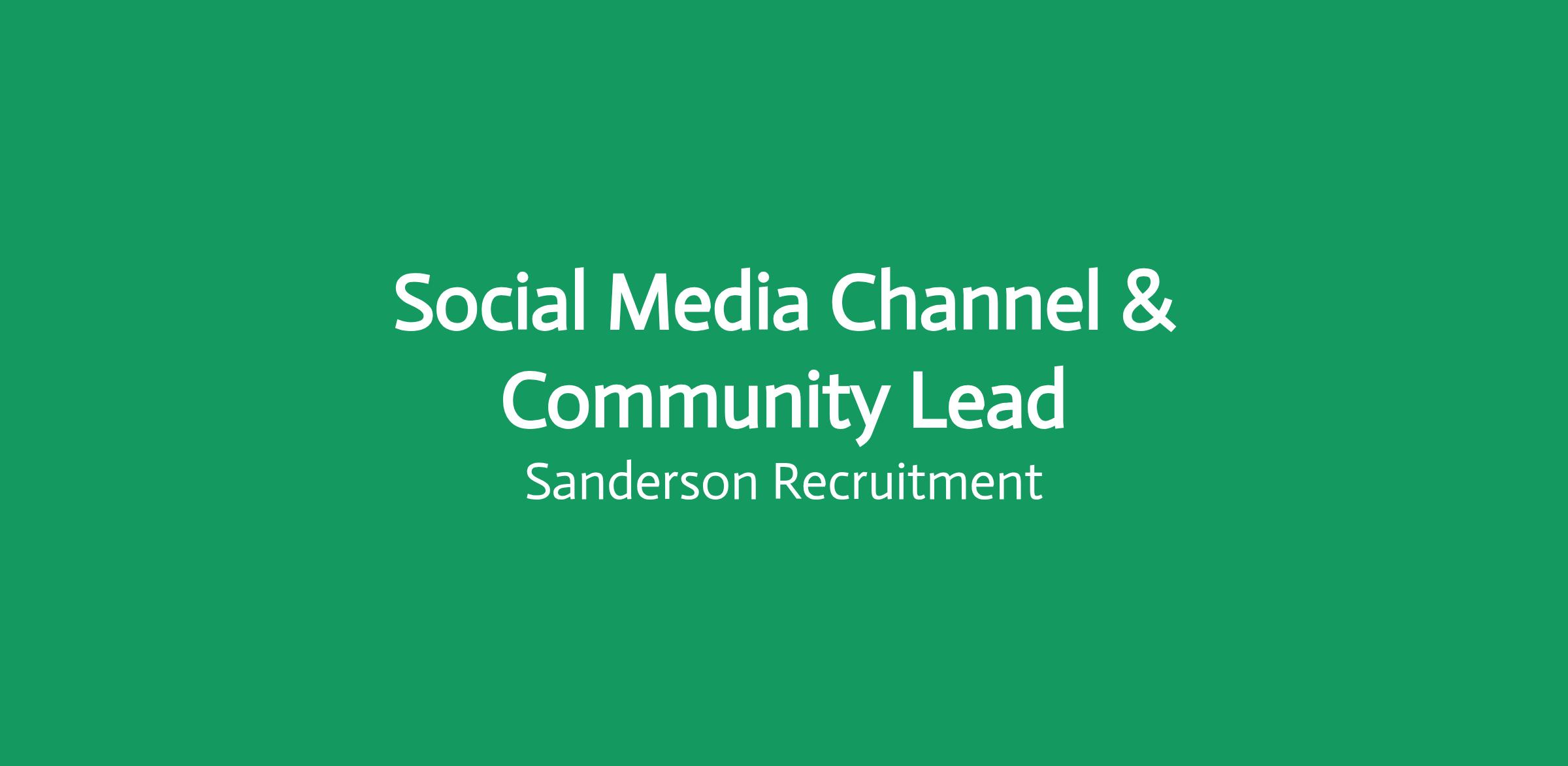 Sanderson are partnered with a leading retail brand to identify a Social Media Channel & Community Lead to elevate their brand presence, build engaged communities and create genuine, meaningful connections with audiences click apply for full job details