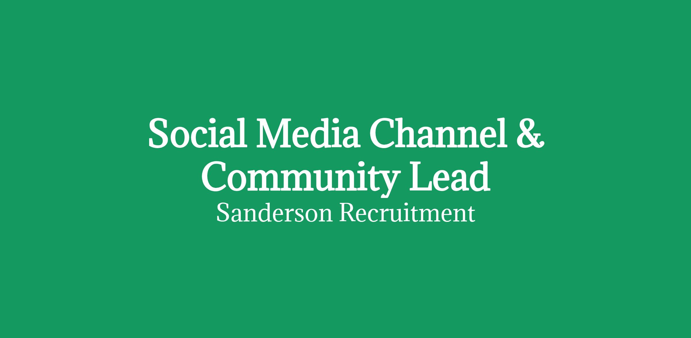 Sanderson are partnered with a leading retail brand to identify a Social Media Channel & Community Lead to elevate their brand presence, build engaged communities and create genuine, meaningful connections with audiences click apply for full job details