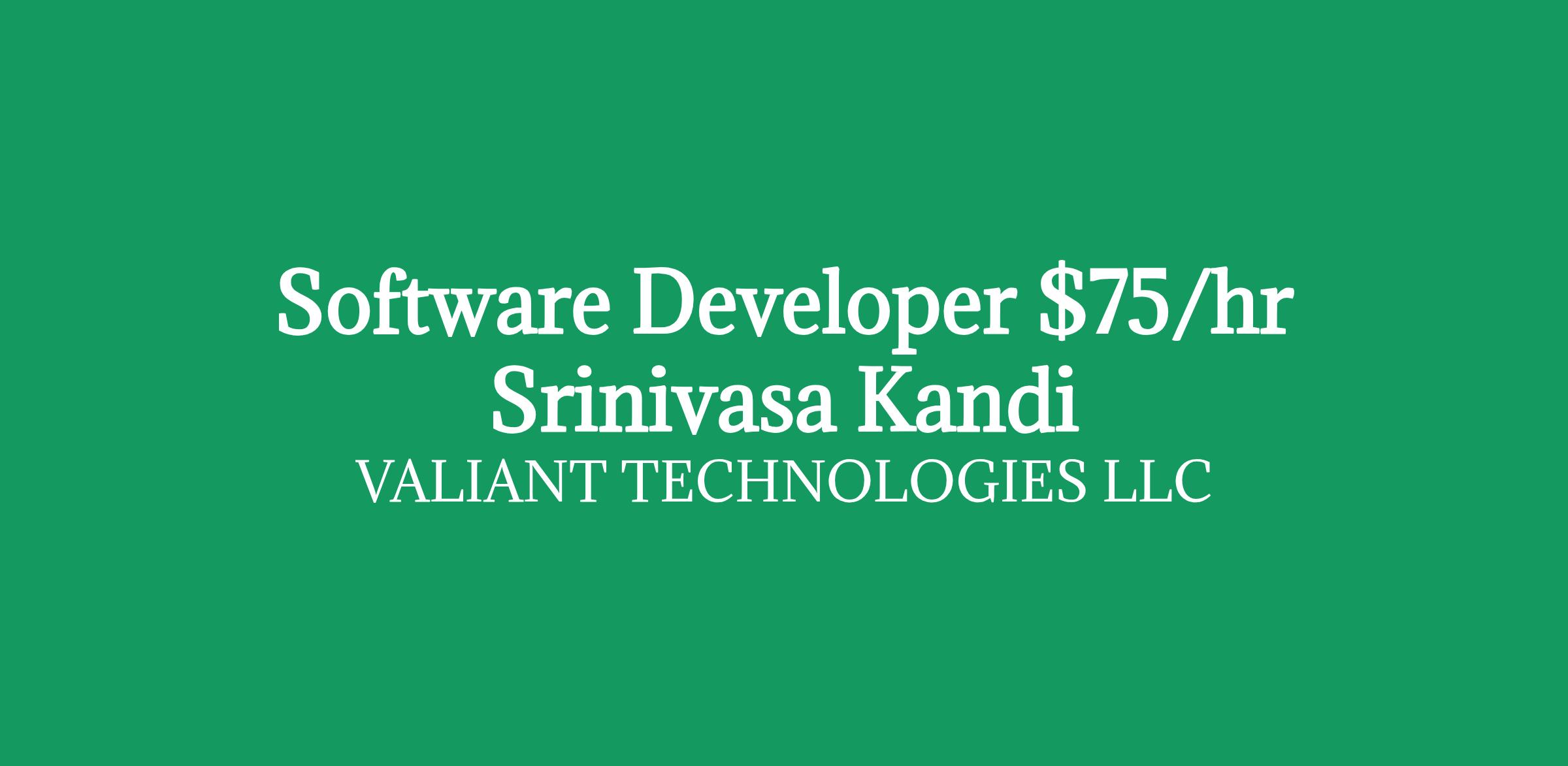 Role: Software DeveloperBill Rate: $75/hour C2CLocation: Holyoke,MADuration: 12+ months/ long-term Interview Criteria: Telephonic + ZoomDirect Client Requirement How you will make an impact: Develop and support internal/external web and vendor applications on Linux using Java, Groovy, Python, and Terraform Troubleshoot and resolve complex issues, identifying root causes and long-term solutions Contribute across the full software development lifecycle, from design to deployment Collaborate with cross-functional teams to support business and technical needs Learn ISO-NE business processes and follow IT standards and change management protocols What you need to be successful in this role: Bachelor s in Computer Science, Engineering, or related field 3+ years of software development experience Strong verbal and written communication skills Solid understanding of relational databases (Oracle, Postgres) Experience with Linux-based web application development using Java, SpringBoot, Python, Groovy, Terraform Familiarity with AWS, Kubernetes, and cloud-native tools Comfortable with Unix systems and shell scripting Proficient with Git, Jenkins, and CI/CD workflows Strong analytical and problem-solving skills Desired But Not Required Experience in application support Familiarity with CMS platforms (Crafter CMS, Liferay) Exposure to cloud development environments (GitPod, Codex, etc.) Note: If you are interested, please share your updated resume and suggest the best number & time to connect with you. If your resume is shortlisted, one of our IT Recruiter from my team will contact you as soon as possible Srinivasa Reddy Kandi Client Delivery Manager Valiant Technologies LLC Equal Opportunity Employer: We are an equal opportunity employer. All aspects of employment including the decision to hire, promote, discipline, or discharge, will be based on merit, competence, performance, and business needs. We do not discriminate based on race, color, religion, marital status, age, national origin, ancestry, physical or mental disability, medical condition, pregnancy, genetic information, gender, sexual orientation, gender identity or expression, national origin, citizenship/ immigration status, veteran status, or any other status protected under federal, state, or local law