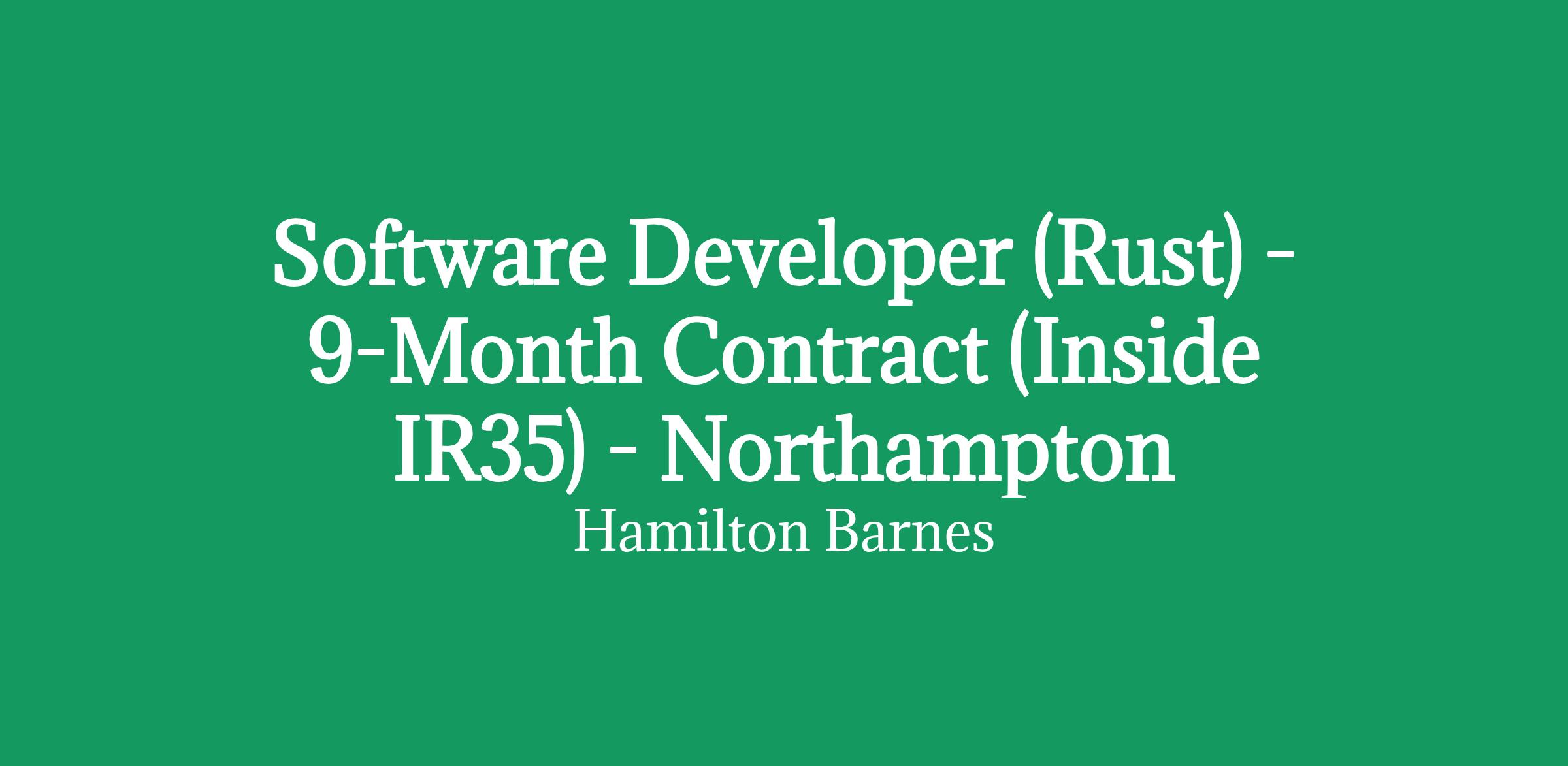Software Developer (Rust) - 9-Month Contract (Inside IR35) - Northampton