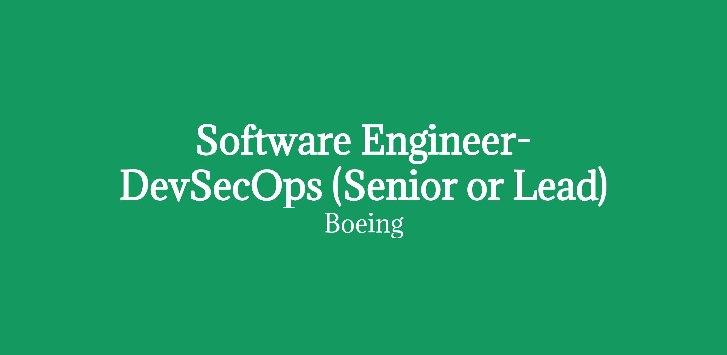 The Boeing Company is currently seeking a Software Engineer-DevSecOps (Senior or Lead) to support our E7A Software Development Environments team located in Tukwila, Washington.