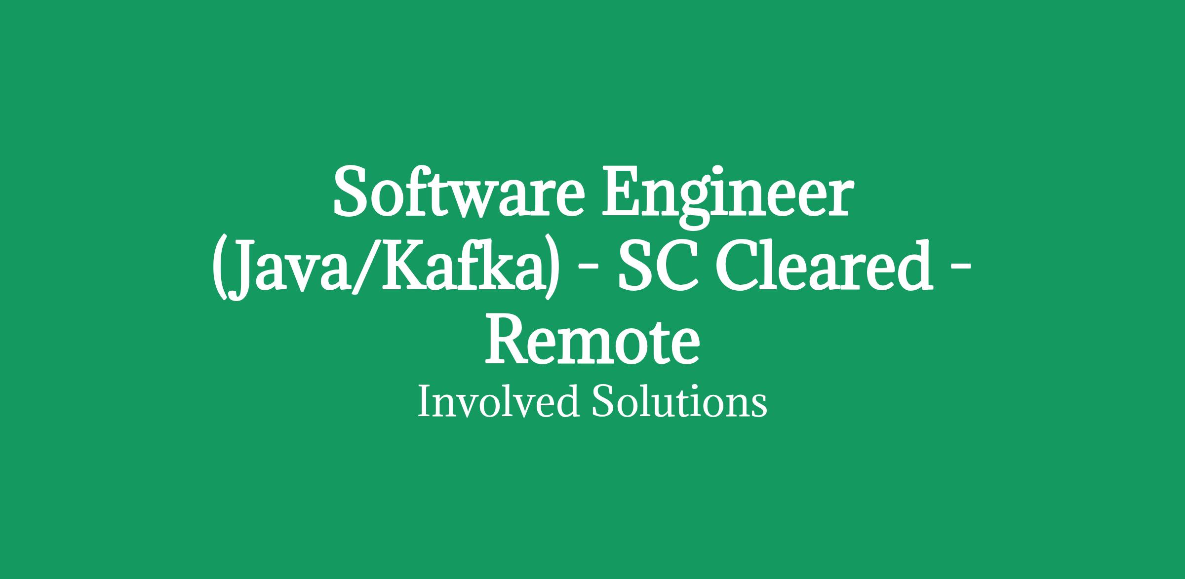 Software Engineer (Java/Kafka) - SC Cleared - RemoteRate: £550 per dayDuration: 6 months extendableLocation: Remote - Occasional travel to LondonIR35: InsideThe role:A leading Central Government Institution are seeking an experienced Software Engineer (Java/Kafka), to join a high-profile project. This is an initial 6-month contract, Inside IR35 and requiring active SC Clearance.Skills / Experience Requirements: