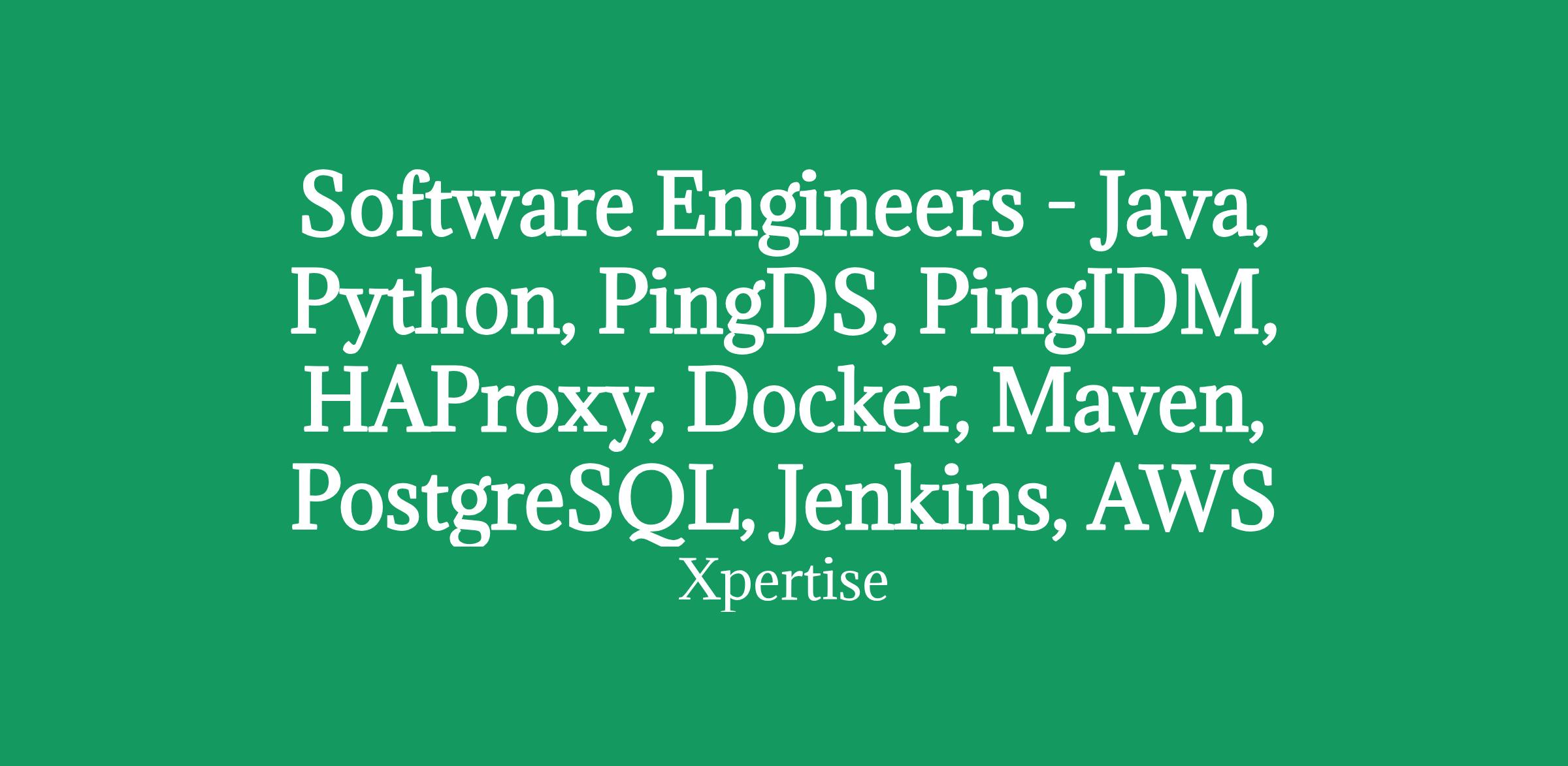 Software Engineers - Java, Python, PingDS, PingIDM, HAProxy, Docker, Maven, PostgreSQL, Jenkins, AWS, Azure, Kubenetes, Terraform