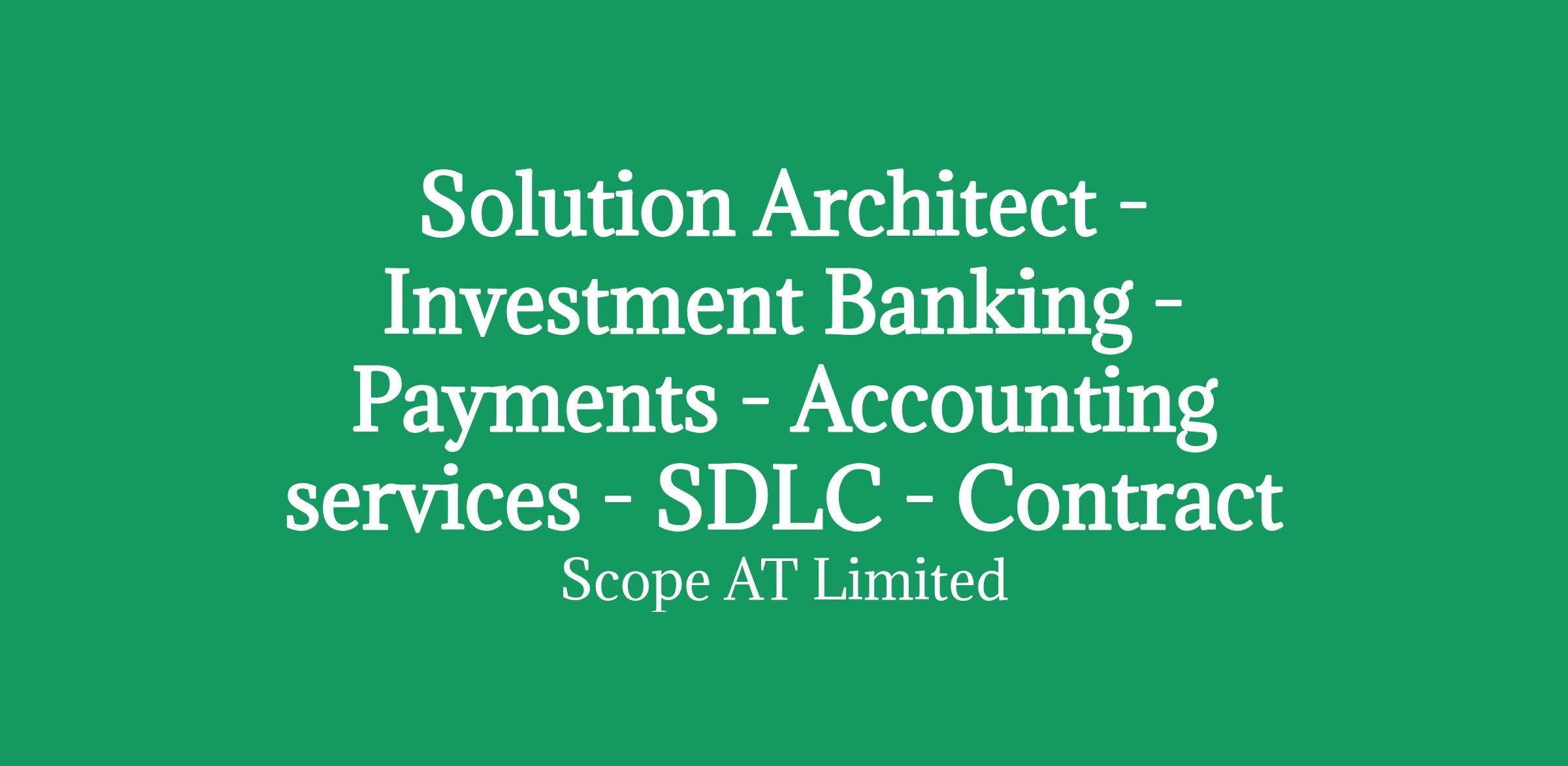Solution Architect - Investment Banking - Payments - Accounting services - SDLC - Contract (Initial 12 months, to be extended further)