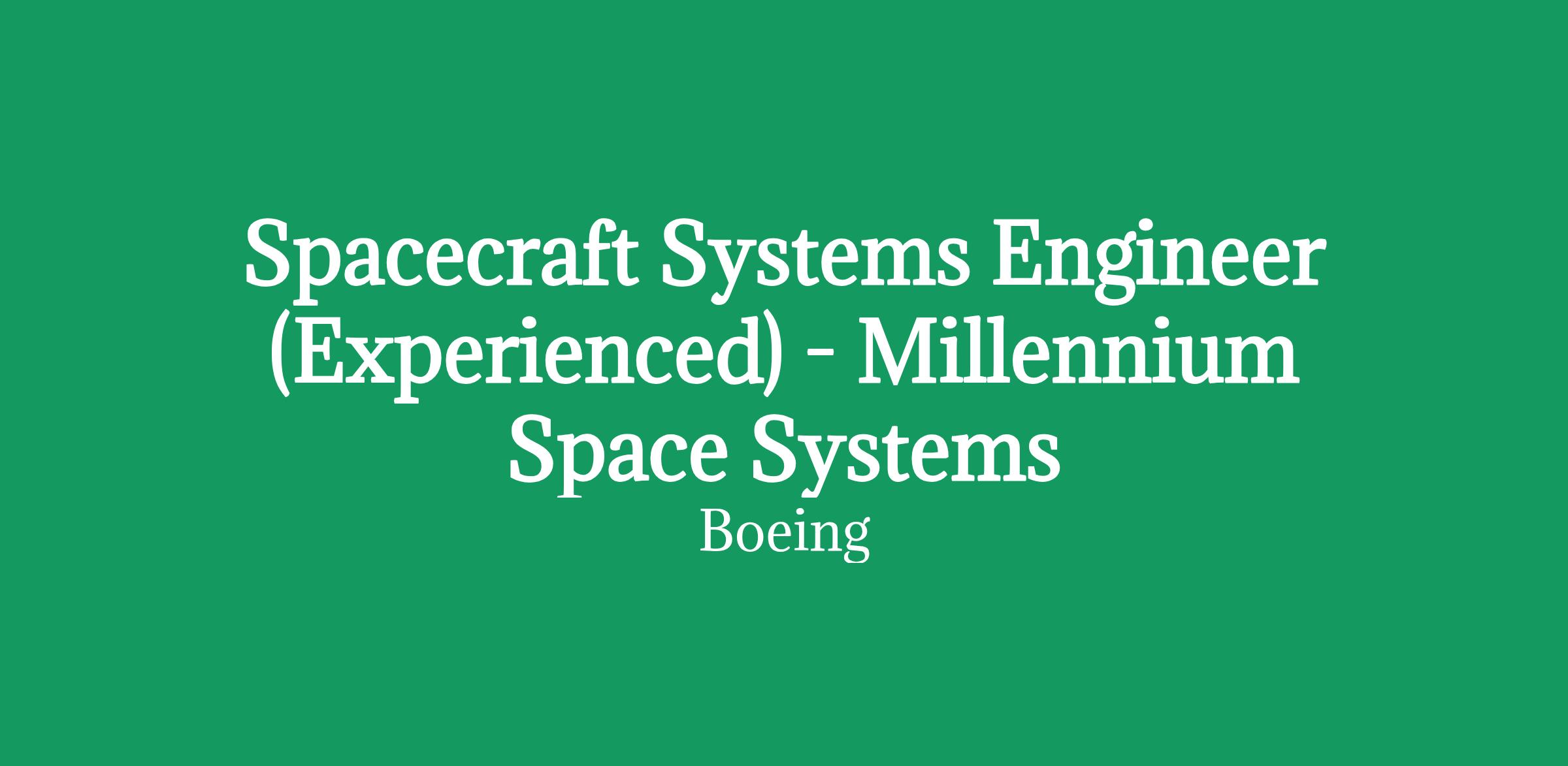 Millennium Space Systems, a Boeing Company, is a Drug Free Workplace (DFW) where post offer applicants and employees are subject to testing for marijuana, cocaine, opioids, amphetamines, PCP, and alcohol when criteria is met as outlined in our policies.