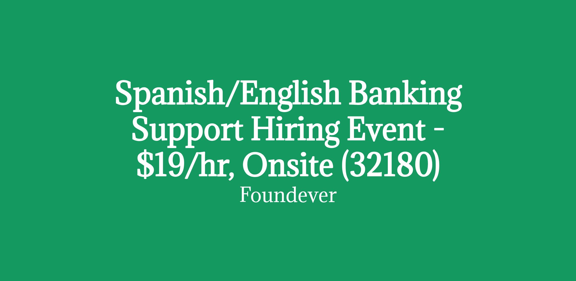 Spanish/English Banking Support Hiring Event - $19/hr, Onsite (32180)