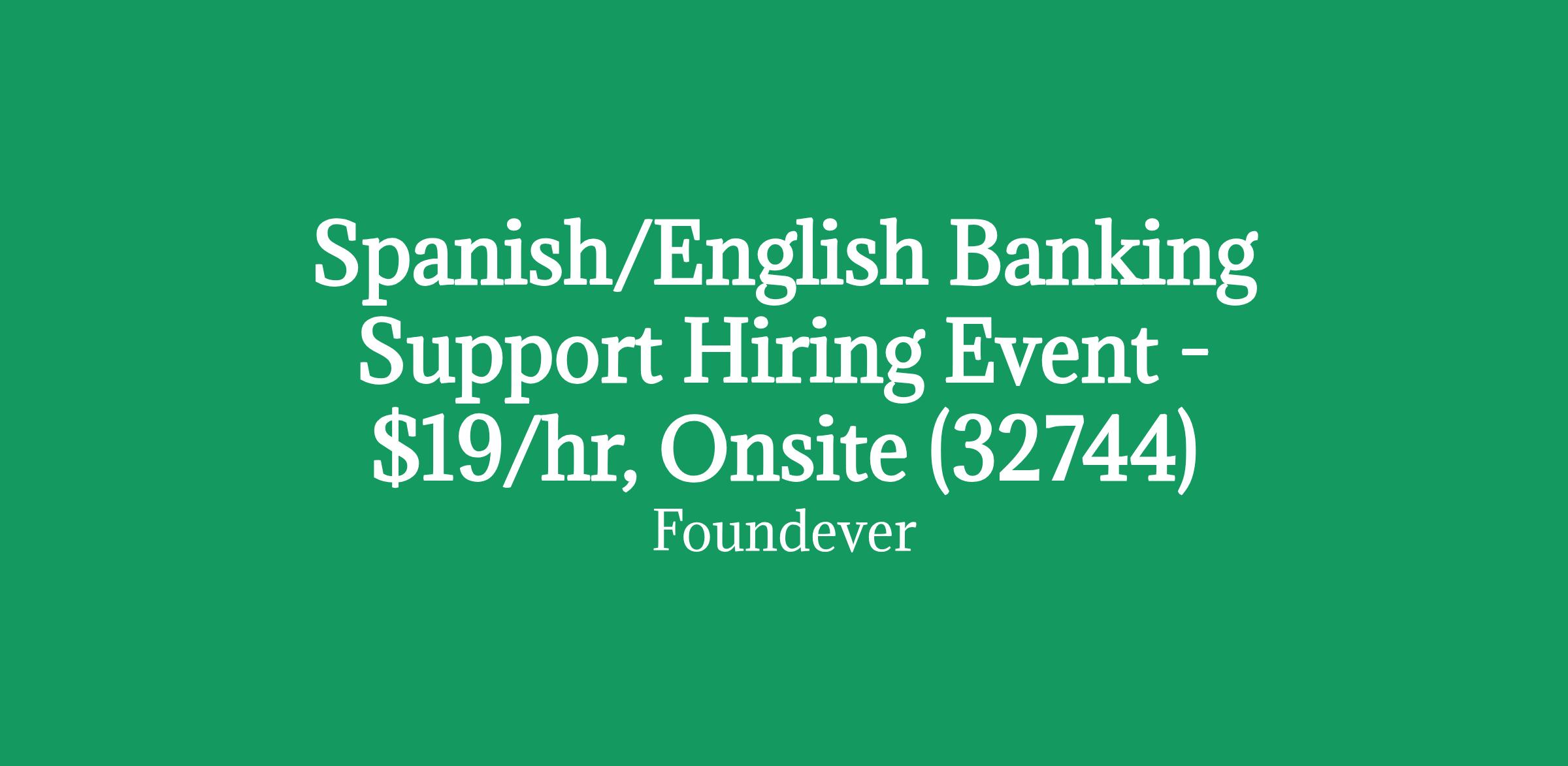 Spanish/English Banking Support Hiring Event - $19/hr, Onsite (32744)