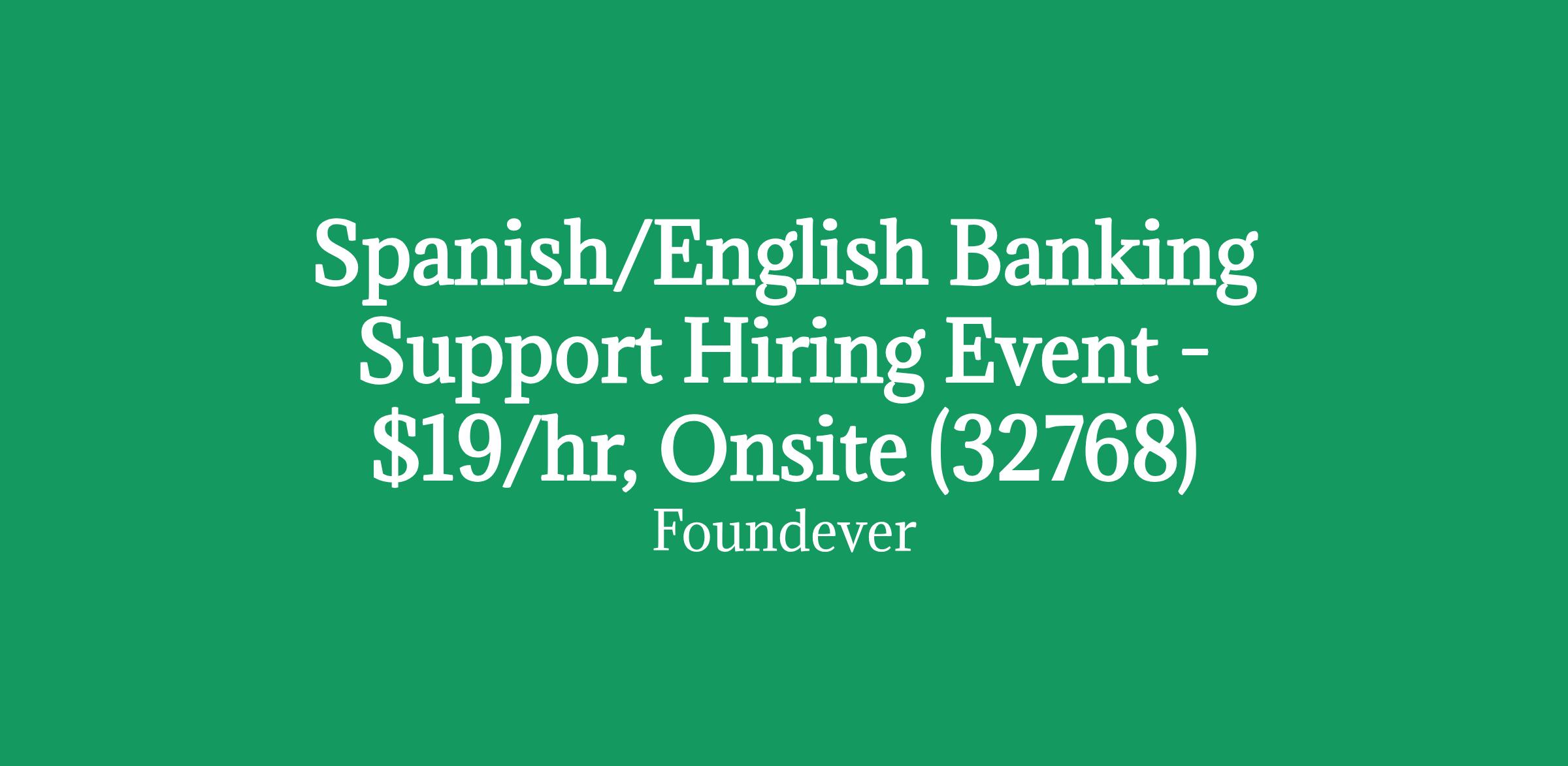 Spanish/English Banking Support Hiring Event - $19/hr, Onsite (32768)