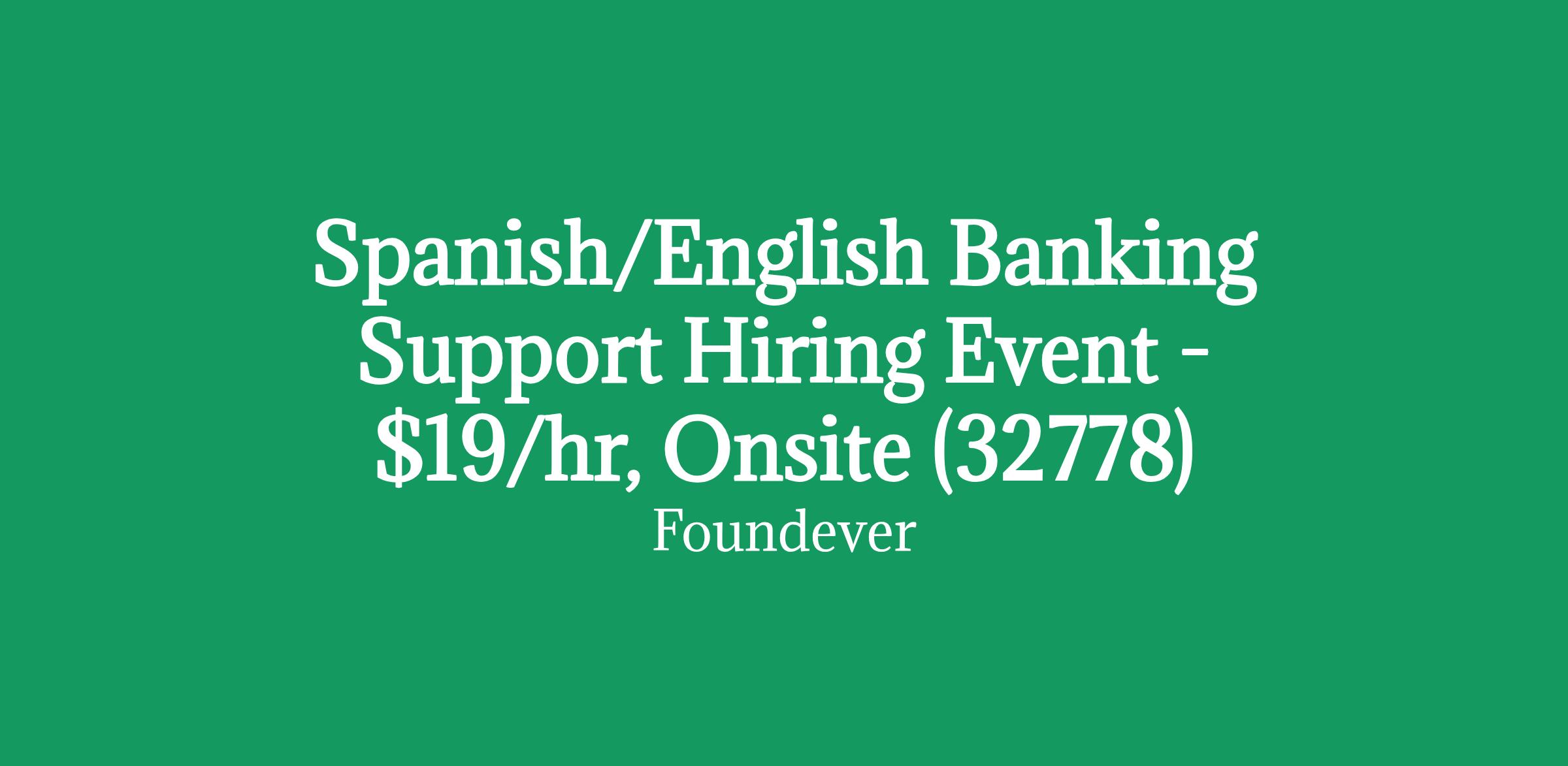 Spanish/English Banking Support Hiring Event - $19/hr, Onsite (32778)