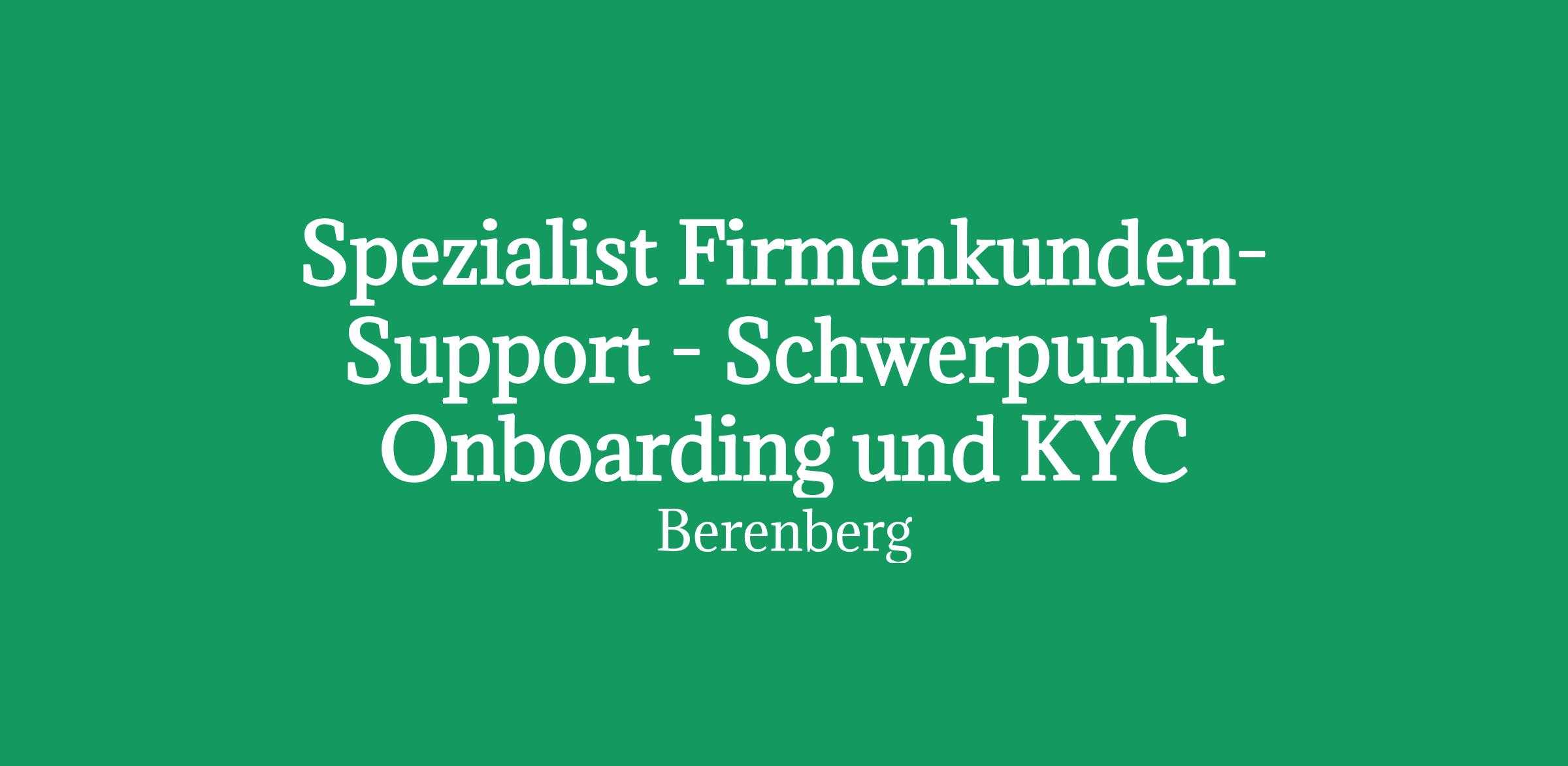 Spezialist Firmenkunden-Support - Schwerpunkt Onboarding und KYC