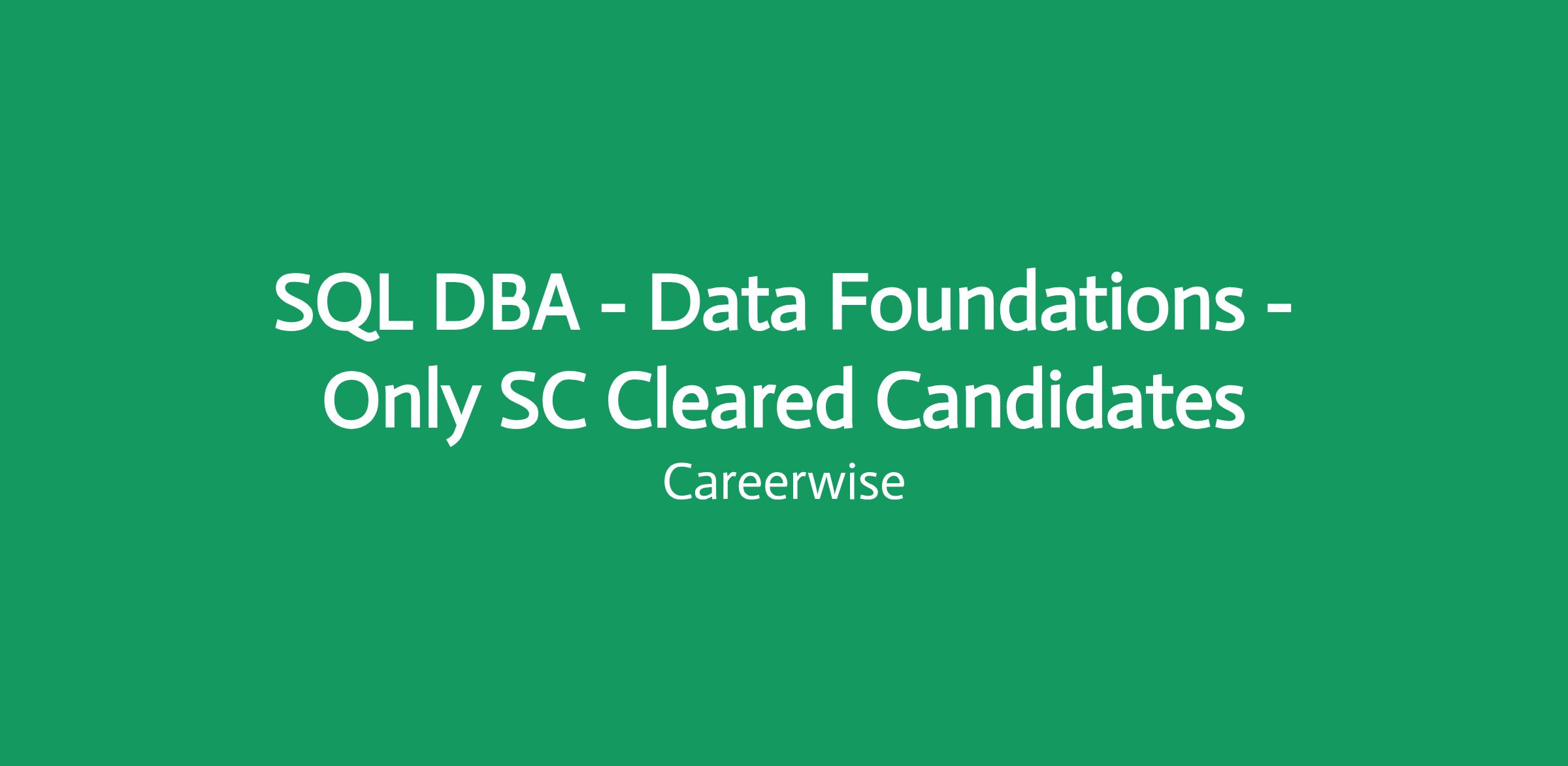 Role: SQL DBA - Data Foundations - Only SC Cleared Candidates