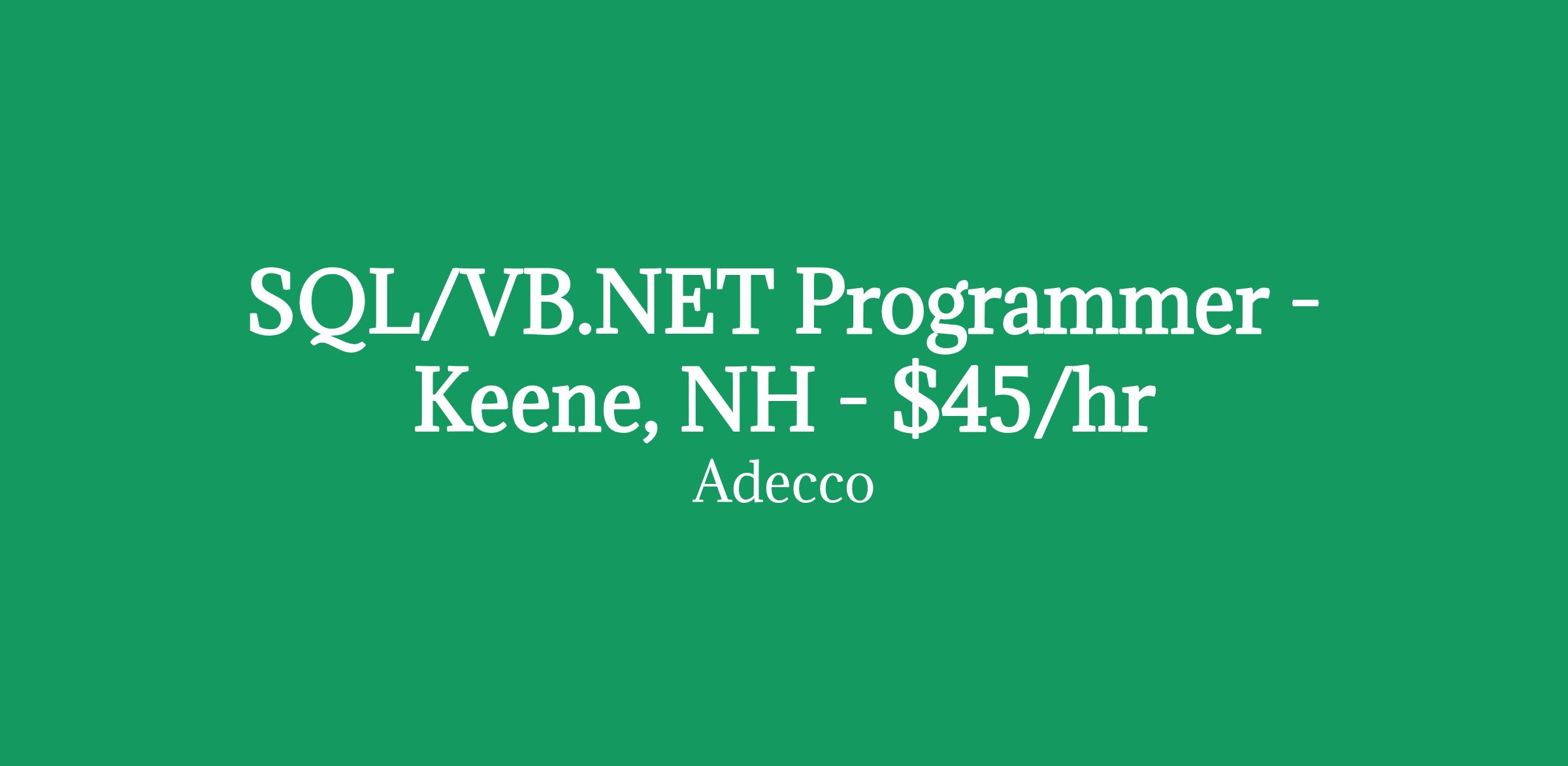 SQL/VB.NET Programmer - Keene, NH - $45/hr