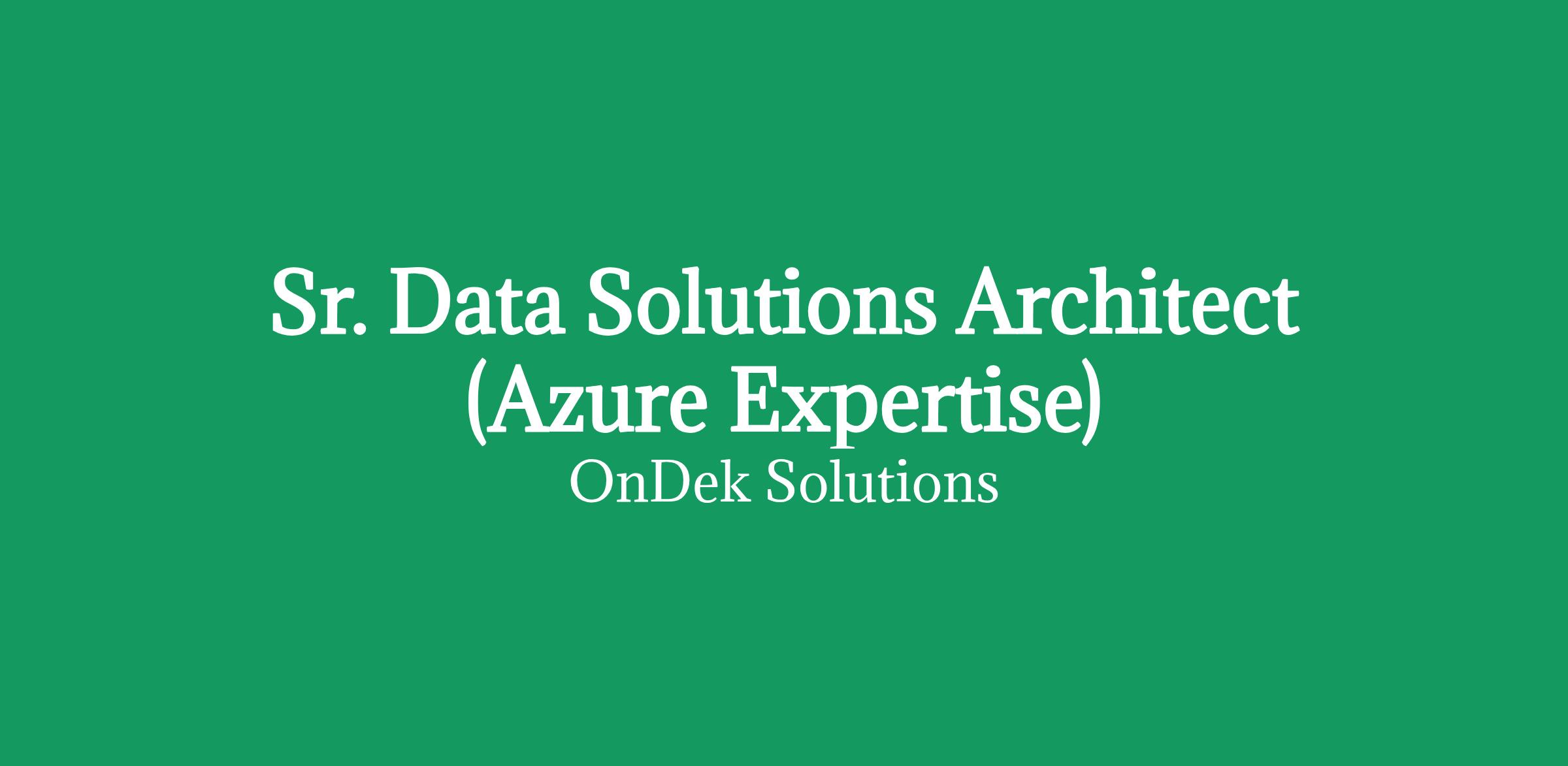 Senior Data Solutions Architect (Azure expertise)Location: Hybrid / Worcester, MA- 1 day per week on-site