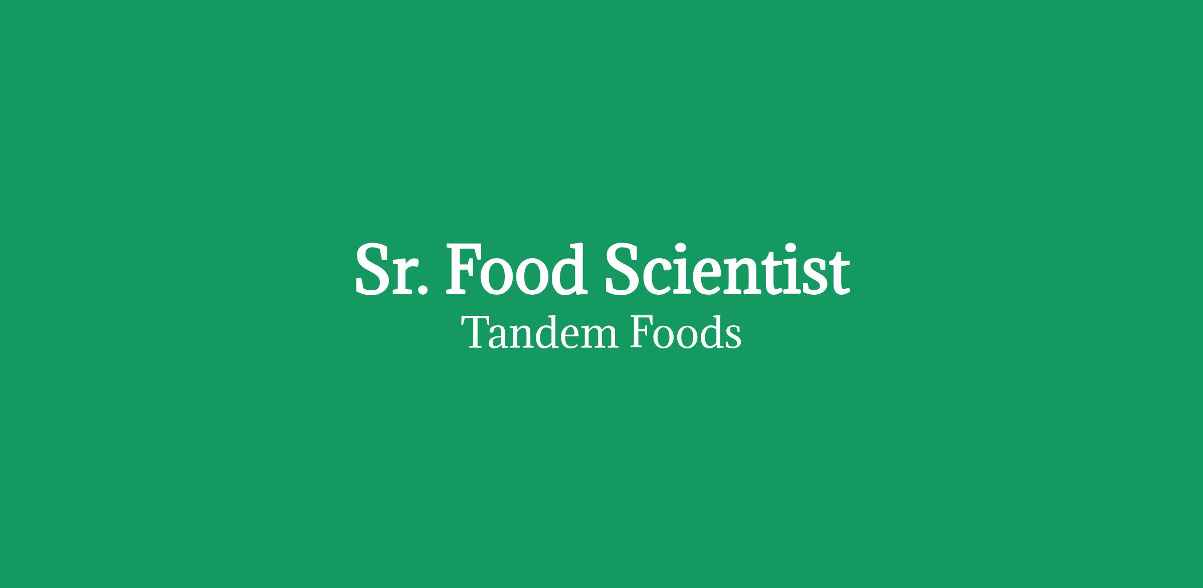 Sr. Food Scientist will be technically sound, creative and will be responsible for formulation and processing support of new customer business across multiple plants within the Tandem Foods network. This role has a heavy emphasis on production support, and the Sr. Food Scientist must be comfortable and confident supporting a production environment. A successful candidate will lead by providing technical support both at the benchtop and plant level. This position will focus on owning new product pipeline projects and formulation initiatives with attention on building relationships with new customers and working collaboratively across all functions of the organization.
