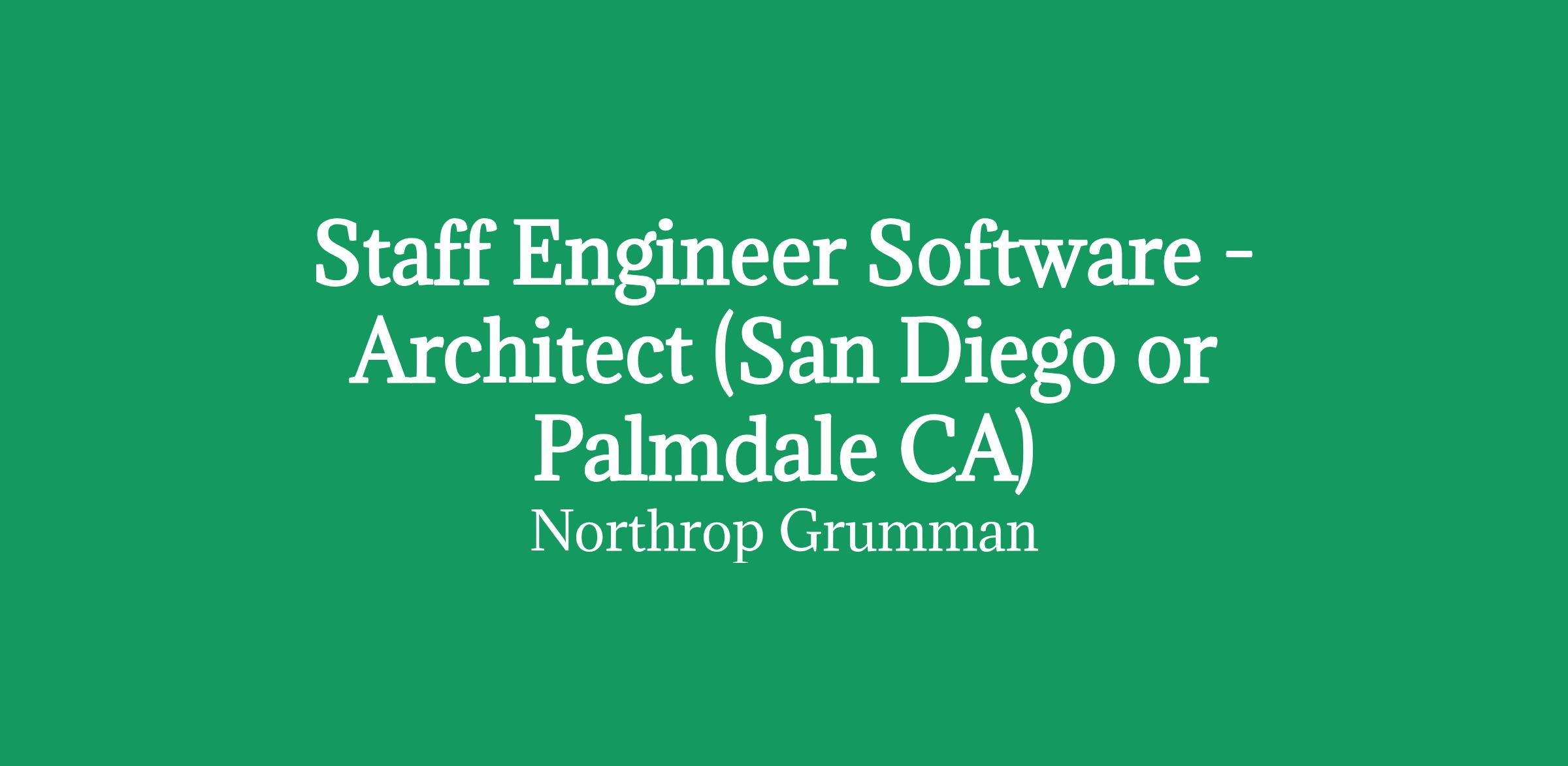 Northrop Grumman Aeronautics Systems is looking to add Staff Engineer Software - Architect to join our team of qualified, diverse individuals within our Software organization. This position can be filled out of San Diego or Palmdale, California.