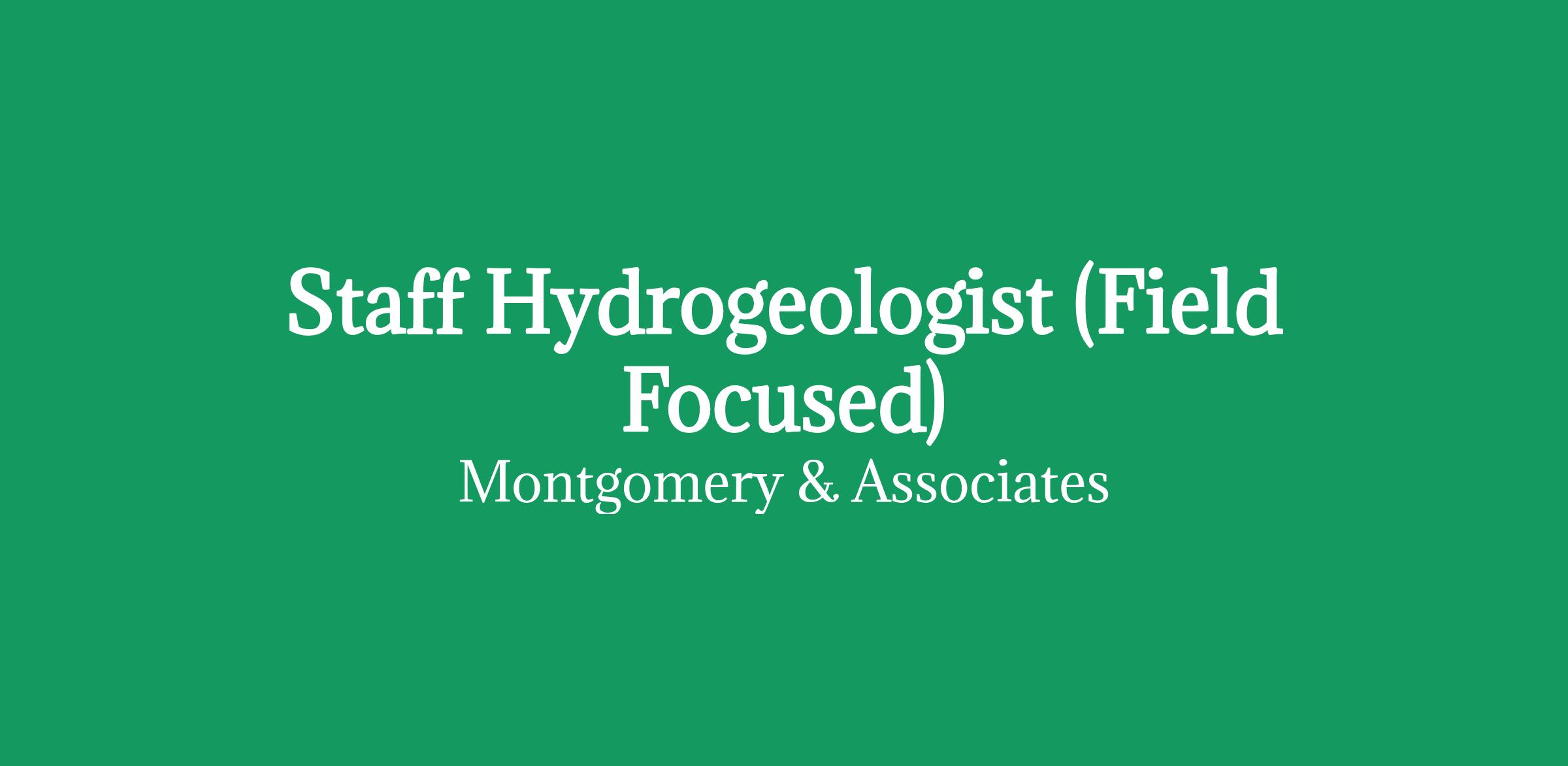 Staff Hydrogeologist (Field Focused) Montgomery & Associates (M&A) is seeking a
