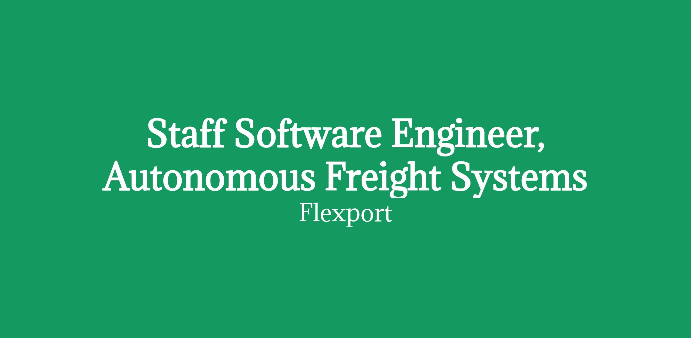 The opportunityThe Autonomous Freight Systems team is a brand new, AI-first engineering team in San Francisco. This team will own Flexport's client-facing rates platform and the self-serve freight booking experience-two of the highest-leverage surfaces in our Client App that dictate how clients see pricing and book freight without manual intervention.