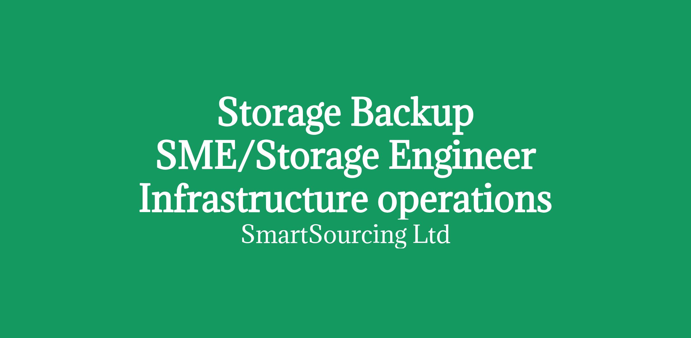 Storage backup SME/Senior Engineer Infrastructure Operations Storage/Back Storage engineer to work within a secure environment.