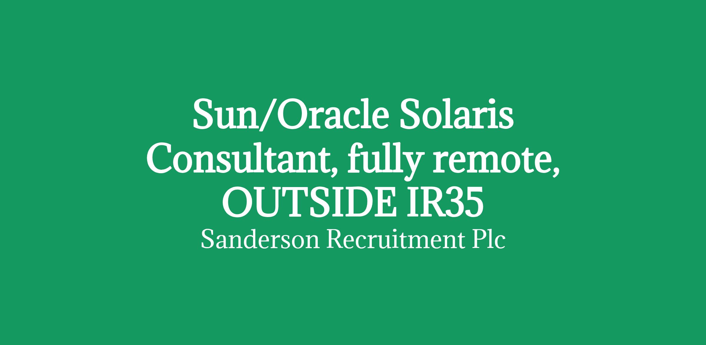 Sun/Oracle Solaris consultant required for a leading financial services company.