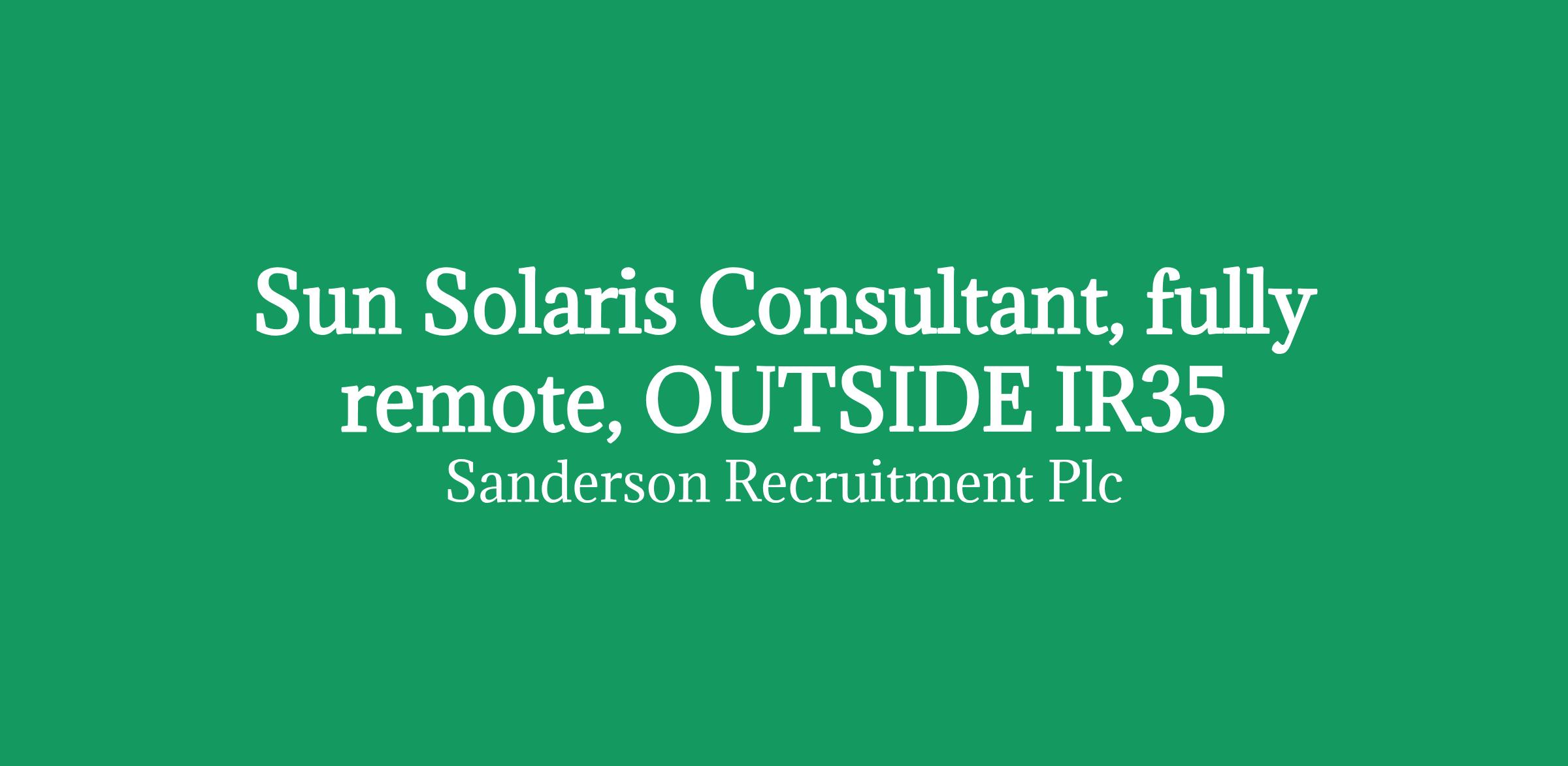 Sun Solaris consultant required for a leading financial services company.
