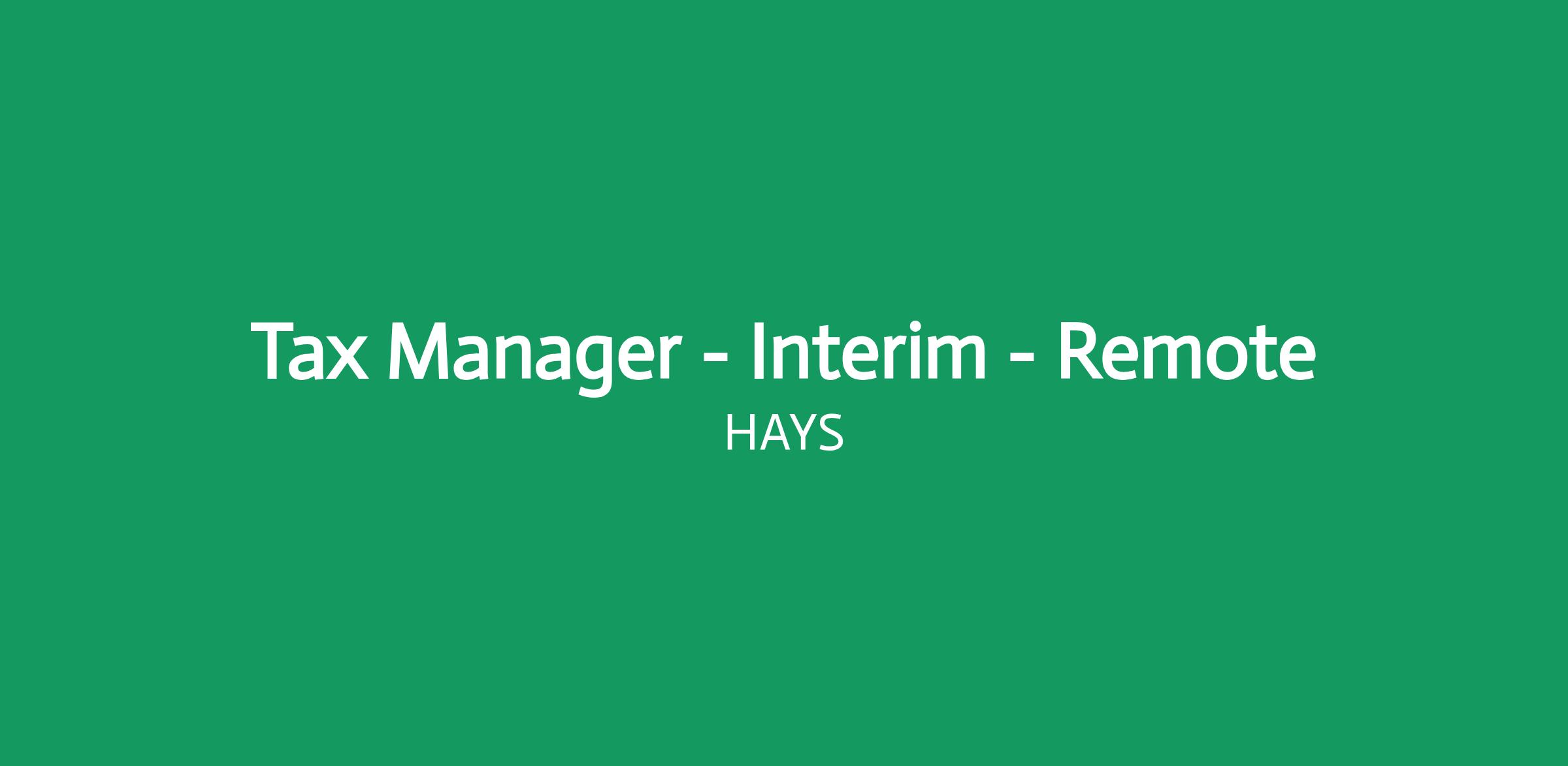 Interim Tax Manager Corporate Tax VAT 100% remote