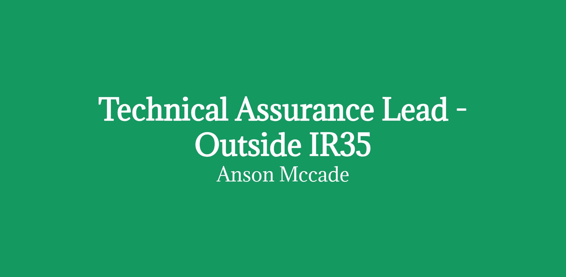 Technical Assurance Lead - 21 Month ContractOutside IR35Remote with 3x days travel to jersey per month.Spec: Technical Assurance Lead