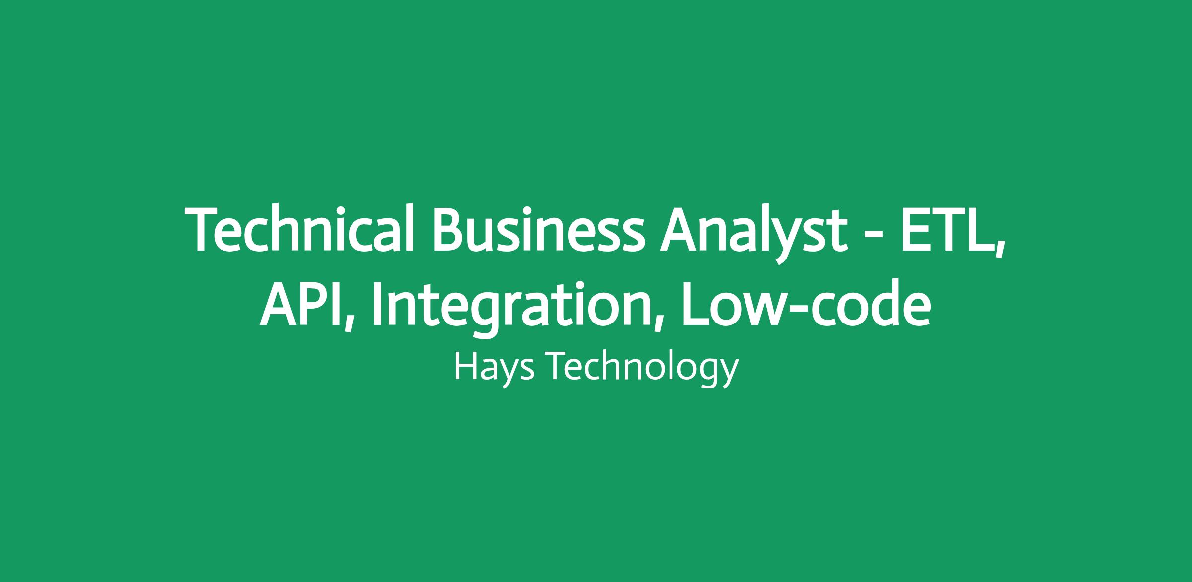 Technical Business Analyst - ETL, API, Integration, Low-code