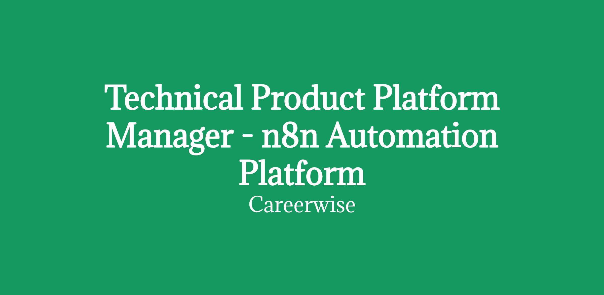 We are seeking a hands-on Technical Product Platform Manager to lead the development and scaling of our enterprise n8n platform.