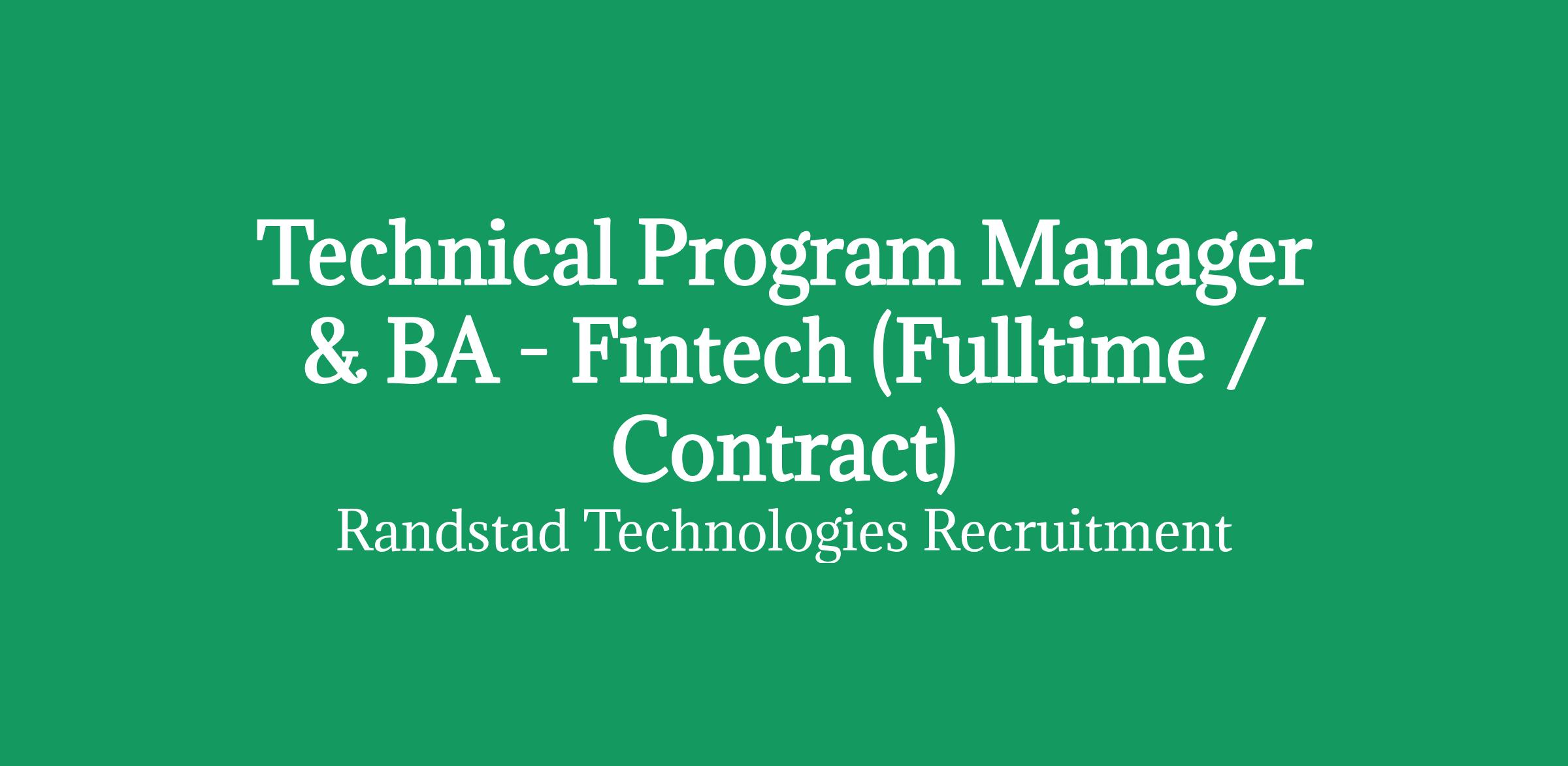Technical Program Manager & BA - Fintech (Fulltime / Contract)