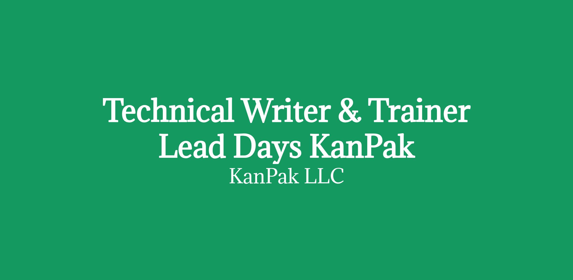 TECHNICAL WRITER & TRAINERKanPak - Penn Yan, NY