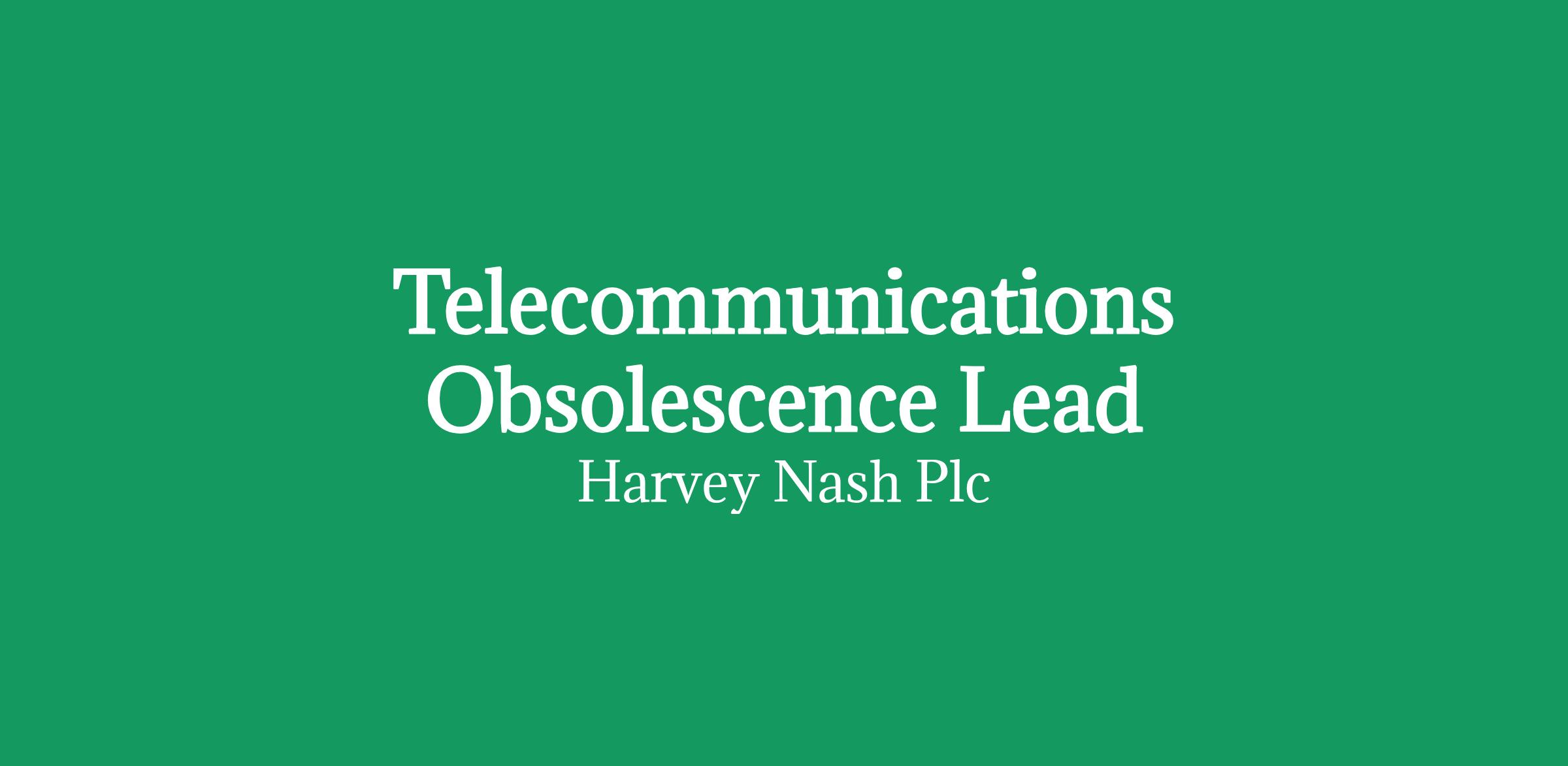 Harvey Nash is now inviting candidates to apply for the role of Telecommunications Obsolescence Lead, a 12-month contract role.