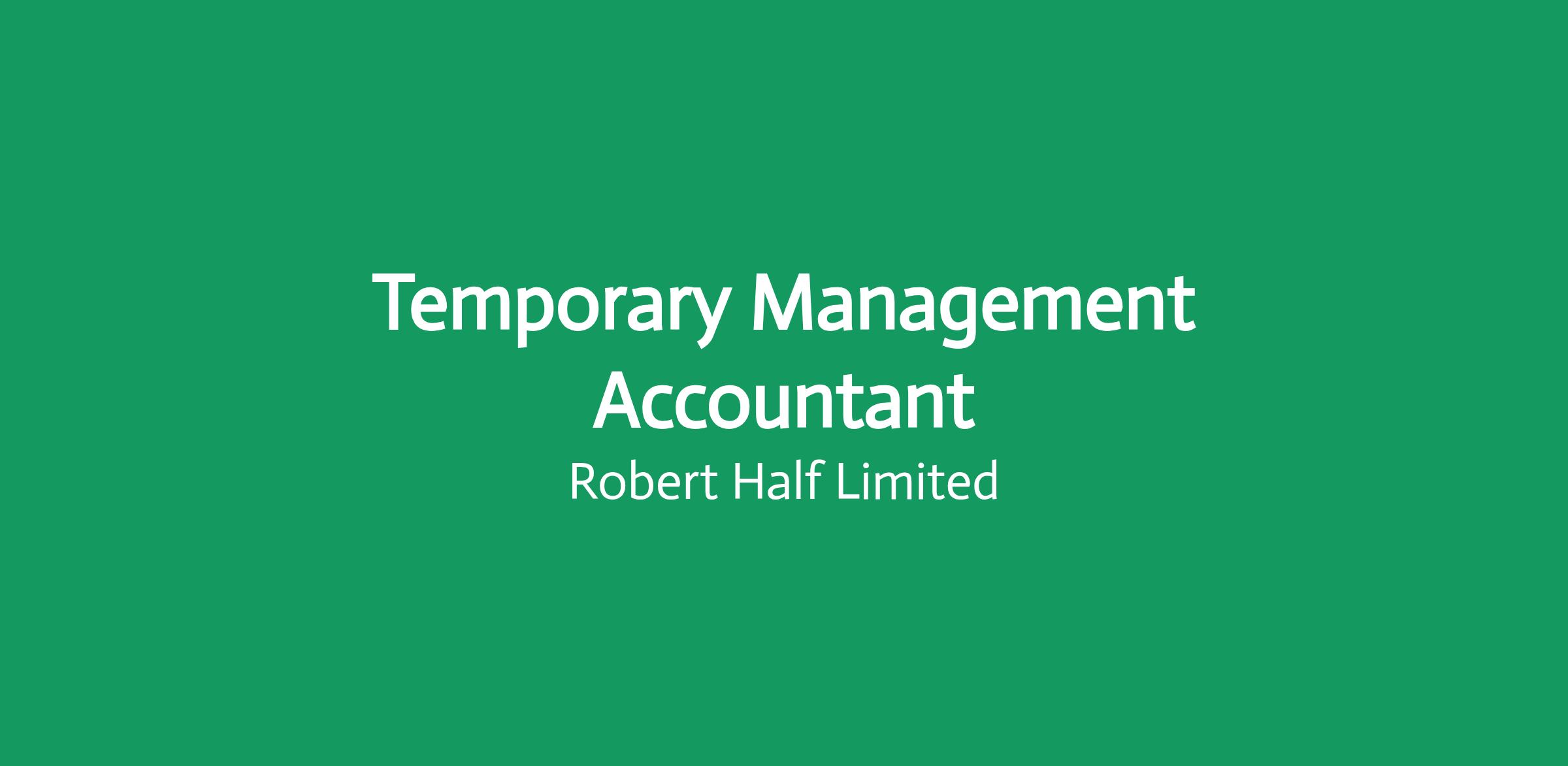 Robert Half is recruiting for a Management Accountant to join a well-established organisation on a 3-month temporary assignment, supporting the business while they complete a permanent recruitment process click apply for full job details