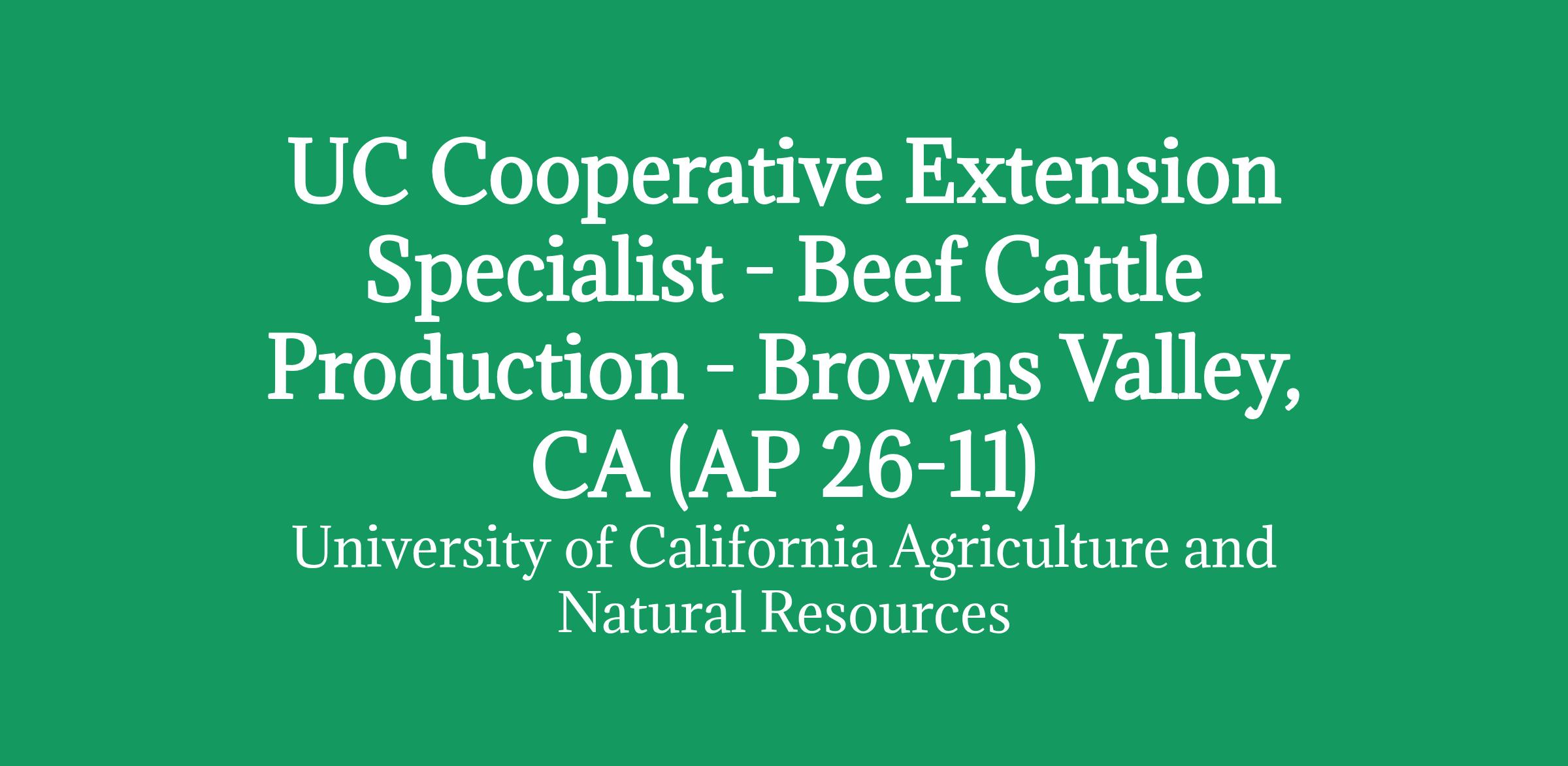 UC Cooperative Extension Specialist - Beef Cattle Production - Browns Valley, CA (AP 26-11)