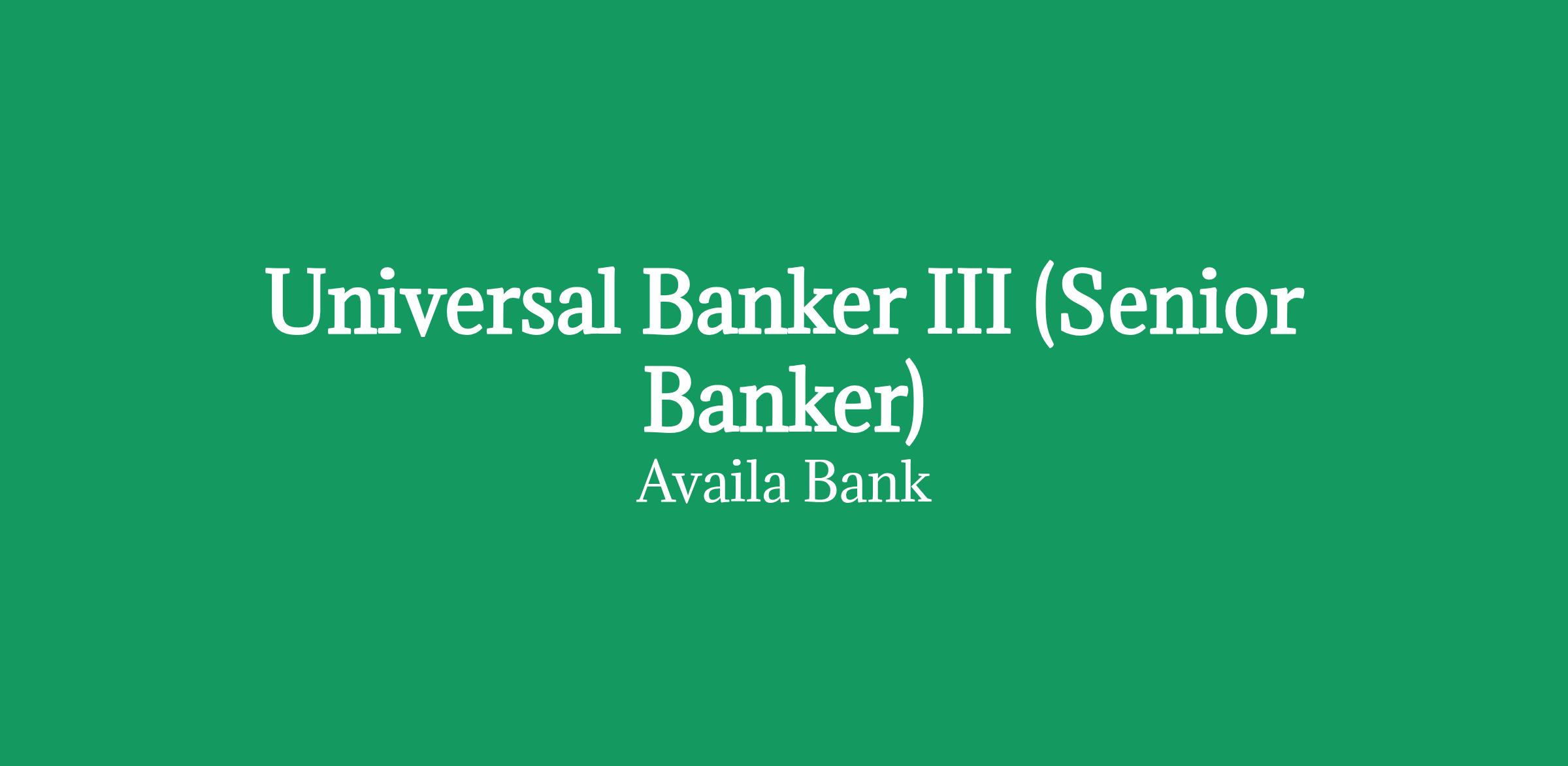 UNIVERSAL BANKER III (SENIOR BANKER) POSITION SUMMARY